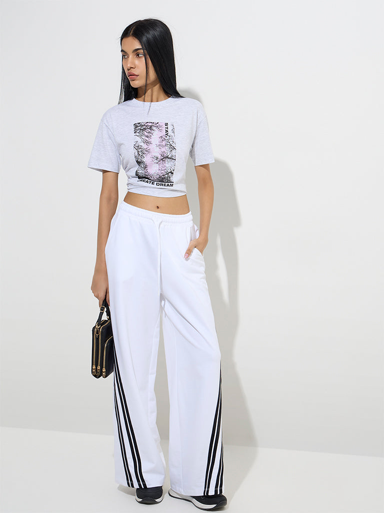This grey t-shirt from Studiofit is spun from a sumptuous cotton-rich fabric and features a nature-inspired graphic for a laid-back vibe. Designed with a classic round neck and half sleeves. it’s a comfortable essential for everyday athleisure and off-duty dressing.