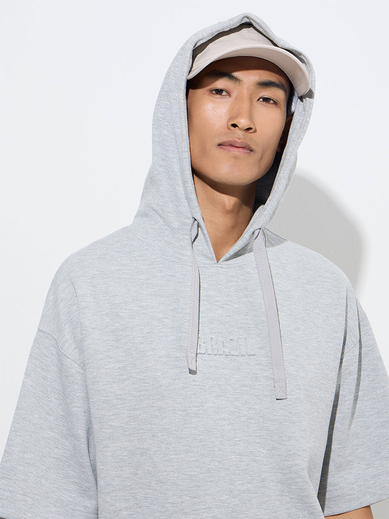 Studiofit Grey Relaxed-Fit Cotton-Blend Hoodie