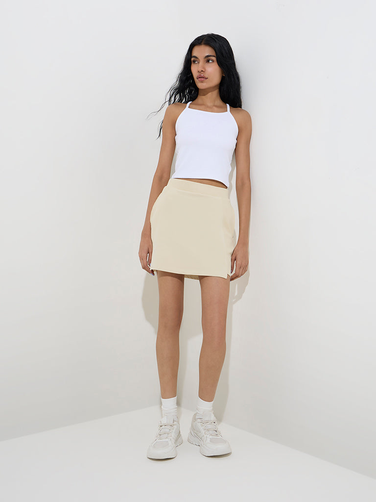 Studiofit Light Beige High-Rise Cotton-Blend Skirt