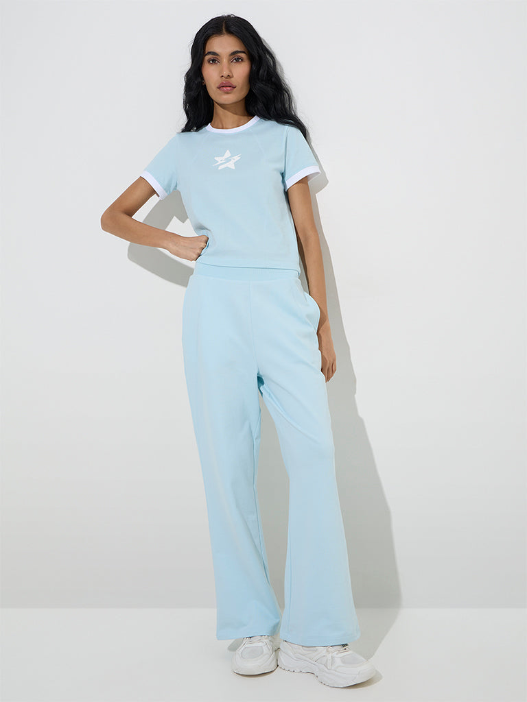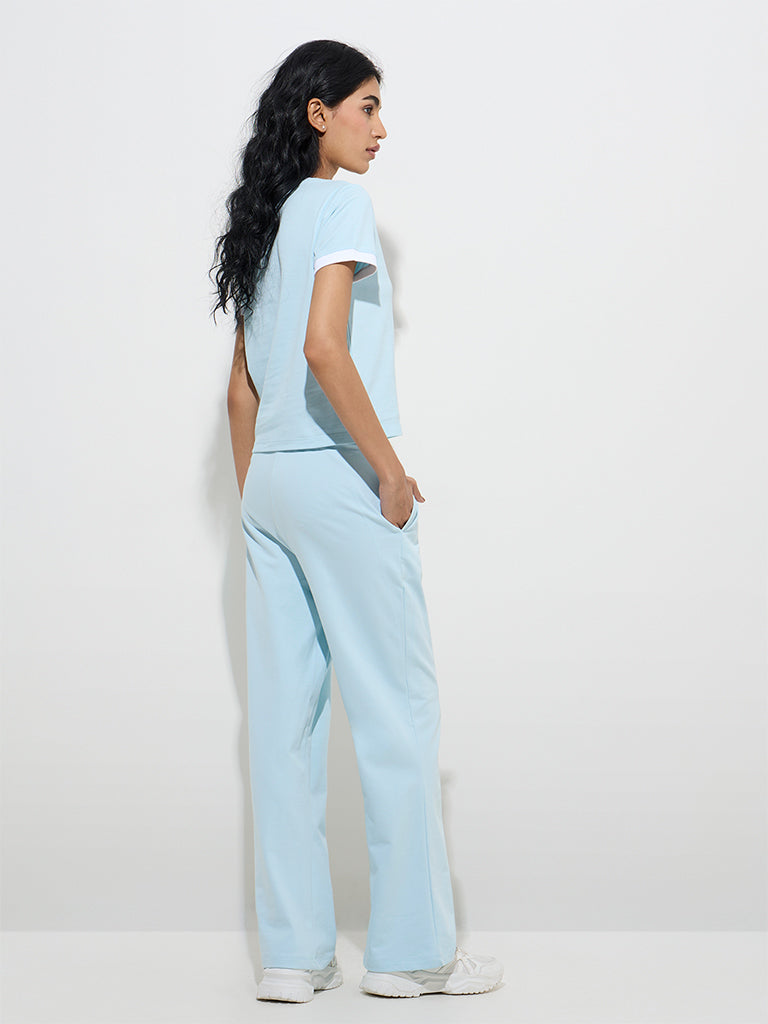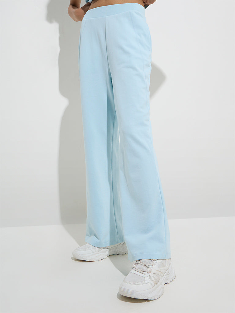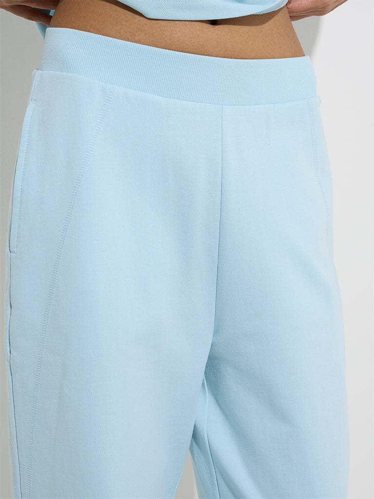 Studiofit Light Blue High-Rise Cotton Track Pants