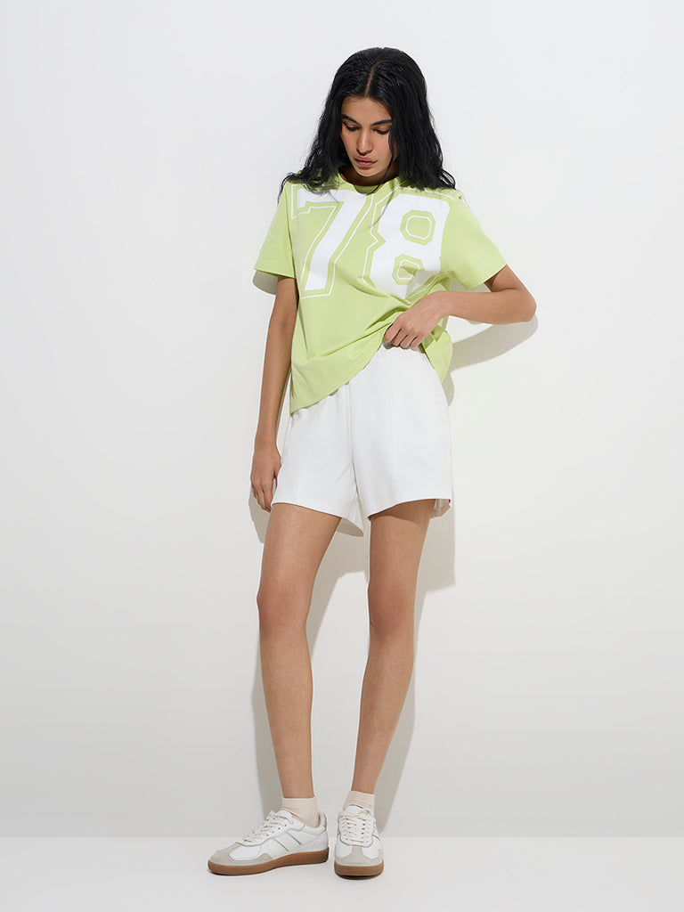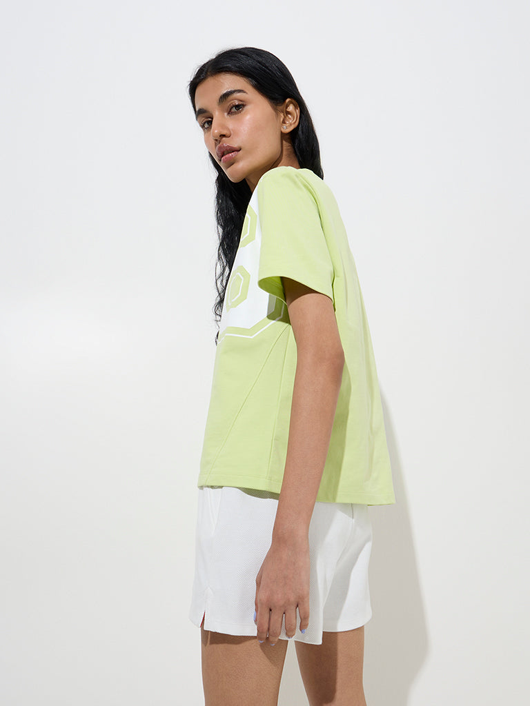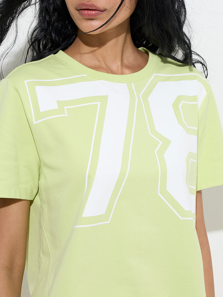 Studiofit Lime Numerical-Printed Cotton T-Shirt
