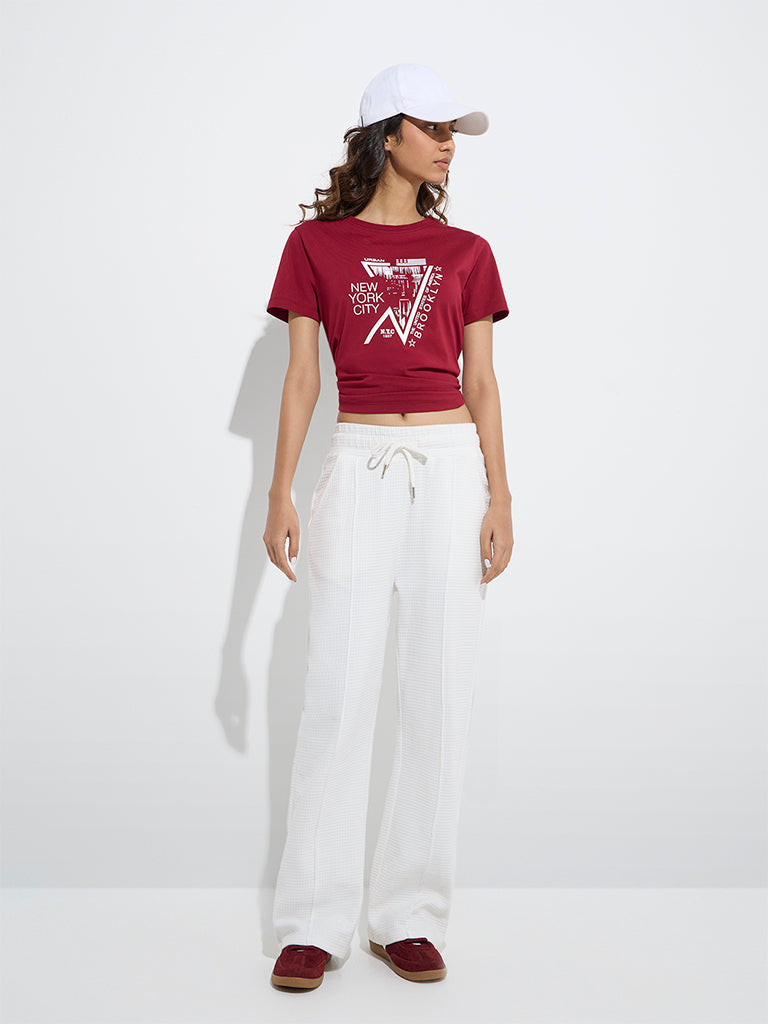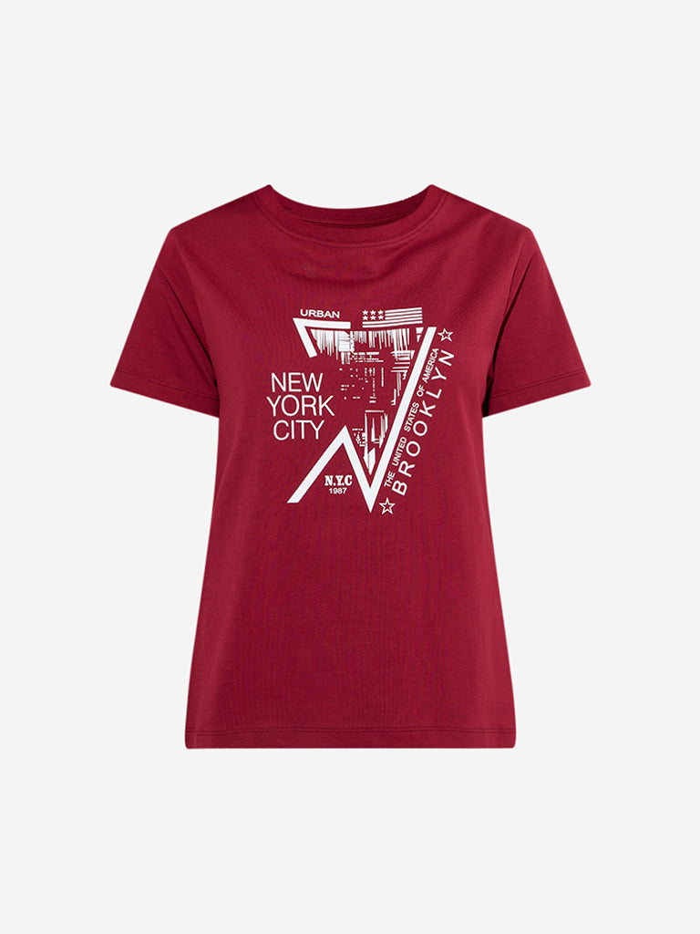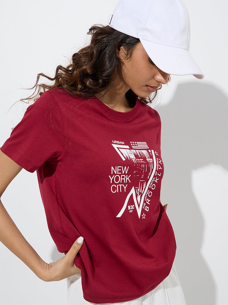 Studiofit Maroon Cityscape-Inspired Cotton T-Shirt