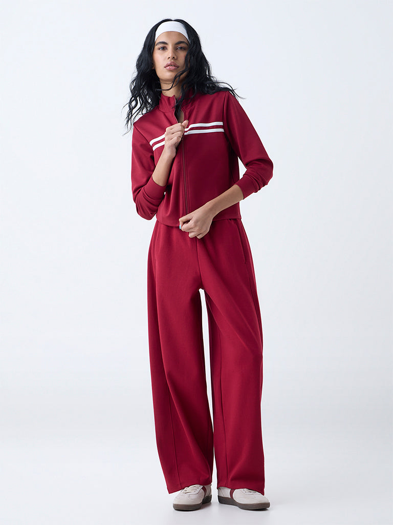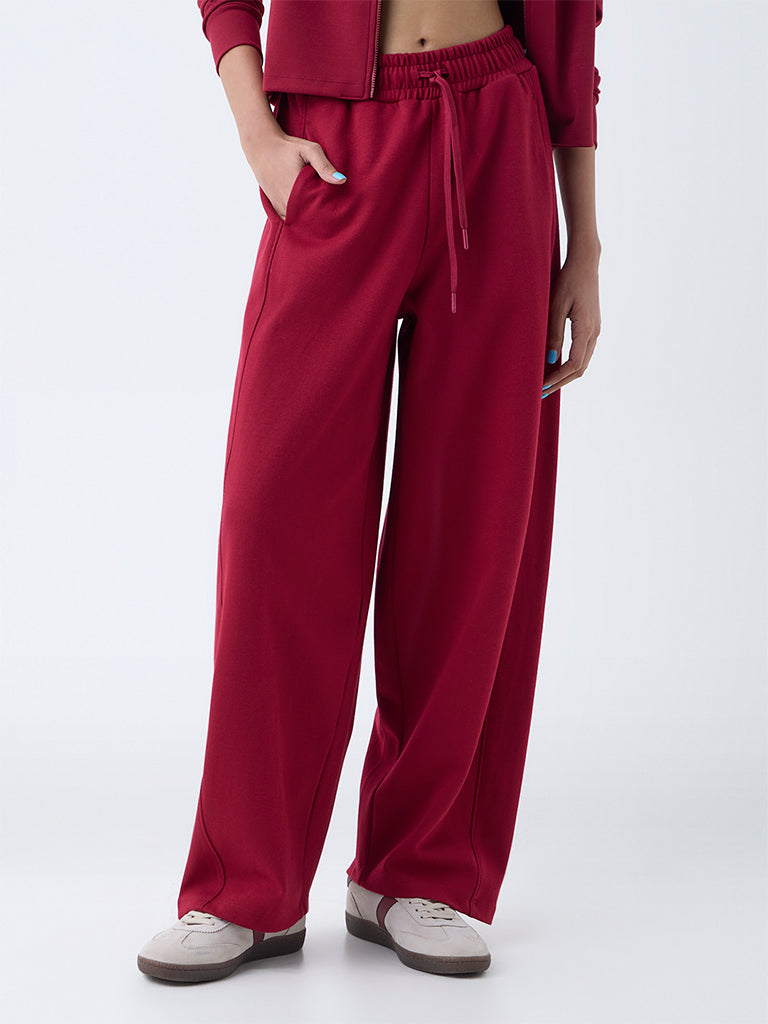 Studiofit Maroon Solid High-Rise Cotton-Blend Track Pants