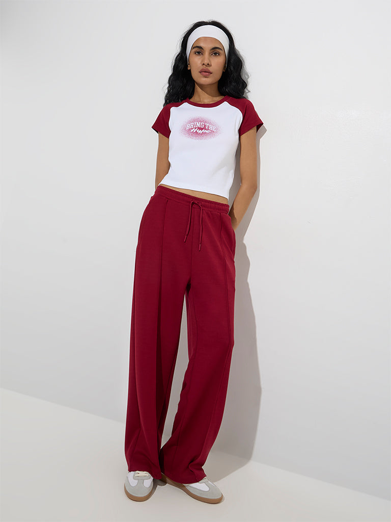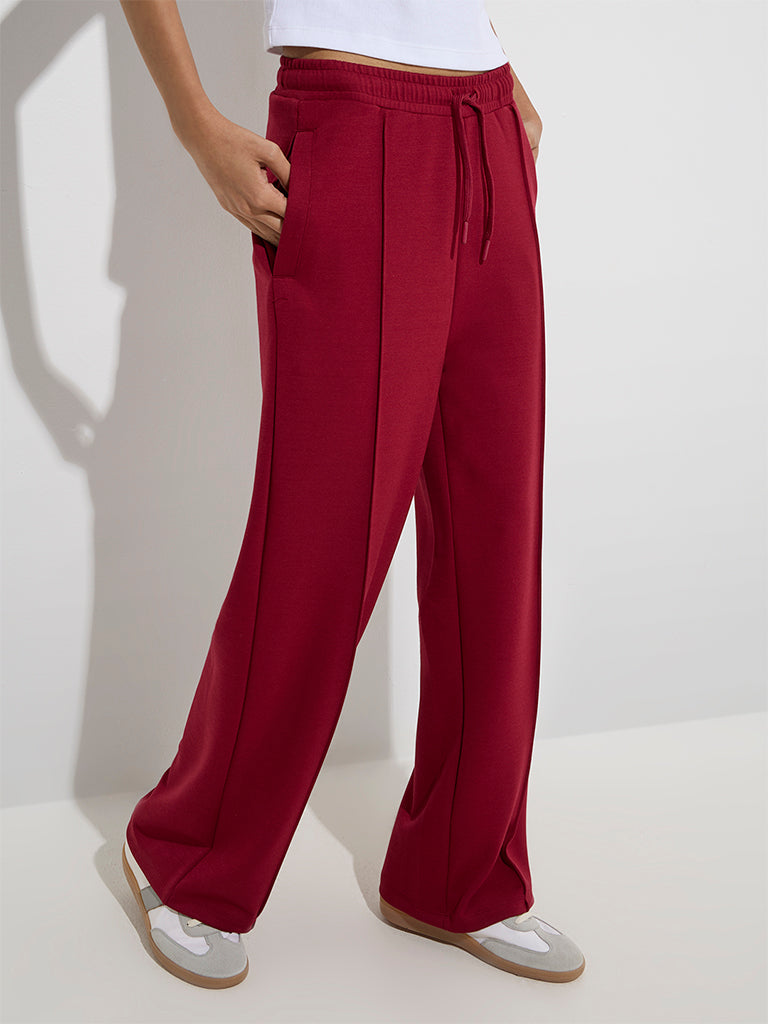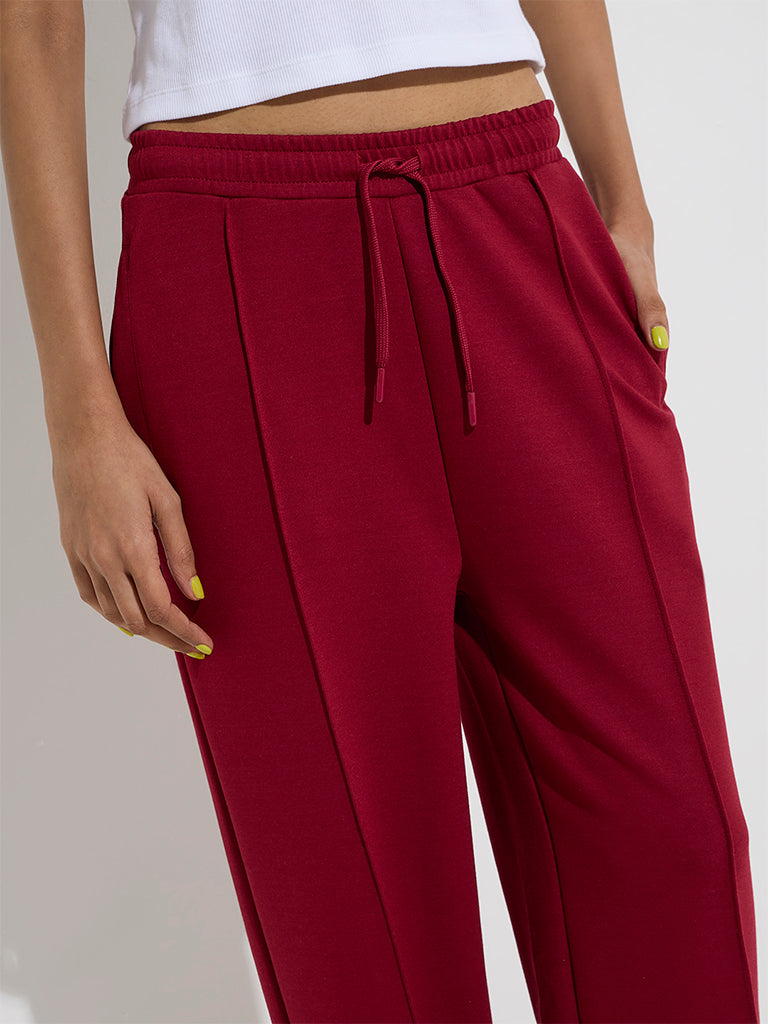 These maroon track pants from Studiofit are milled from a super-soft fabric to keep you comfortable through workouts or downtime. The solid design is elevated with subtle piping that adds an athletic touch. A smooth elastic waistband with adjustable drawstrings and functional side pockets complete this versatile pair.
