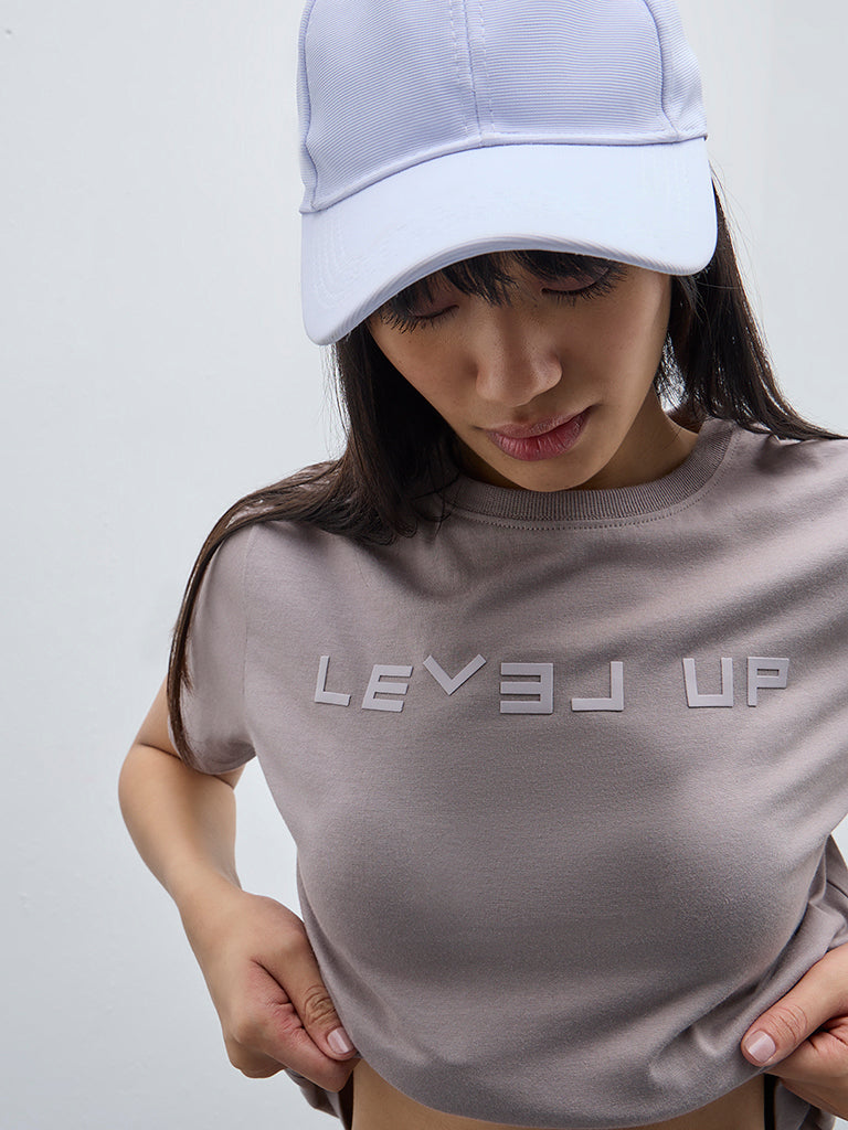 Studiofit presents this mauve t-shirt adorned with text designs. Made from a pure cotton material. this t-shirt is complete with a crew-neck and short sleeves.