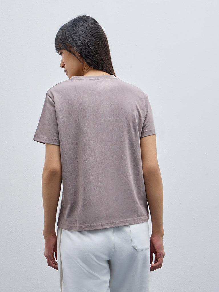 Studiofit Mauve Text Printed Cotton T-Shirt