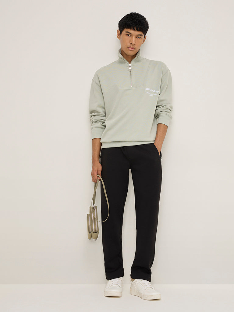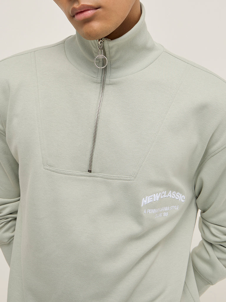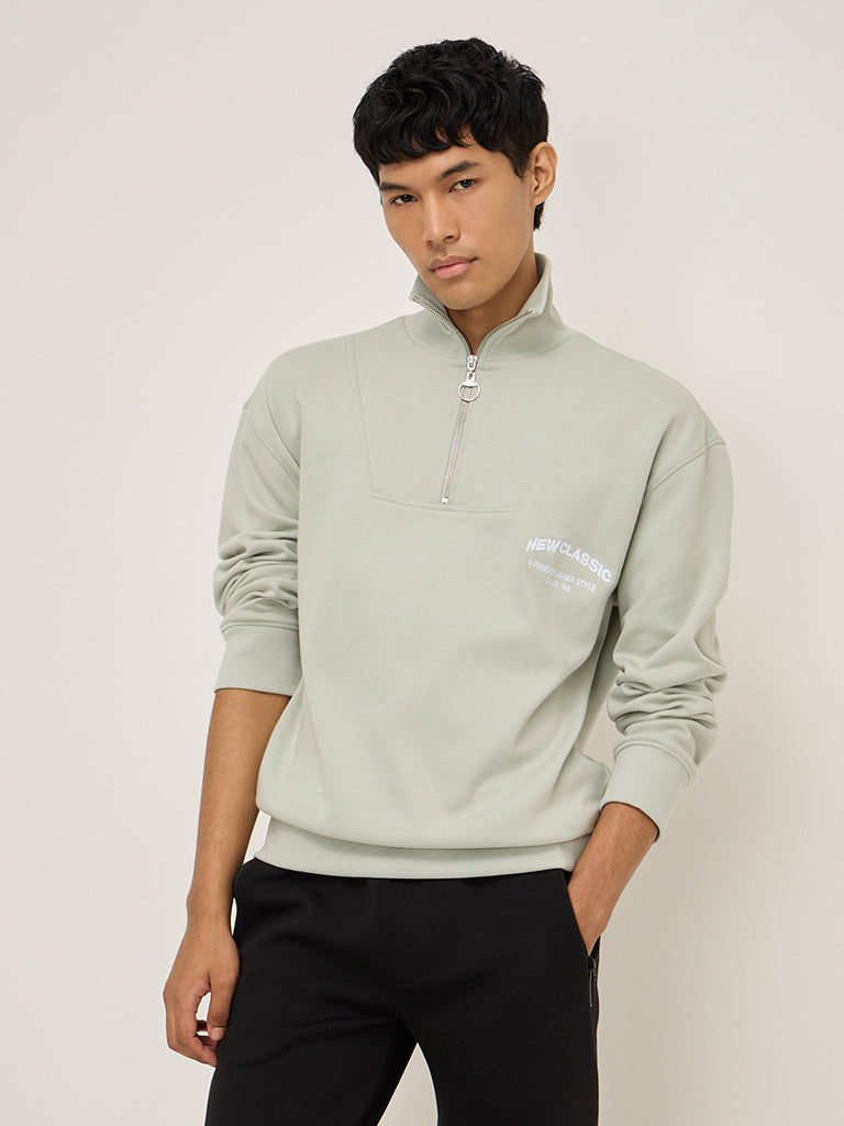 Studiofit Mint Text Design Quarter Zip Cotton-Blend Sweatshirt