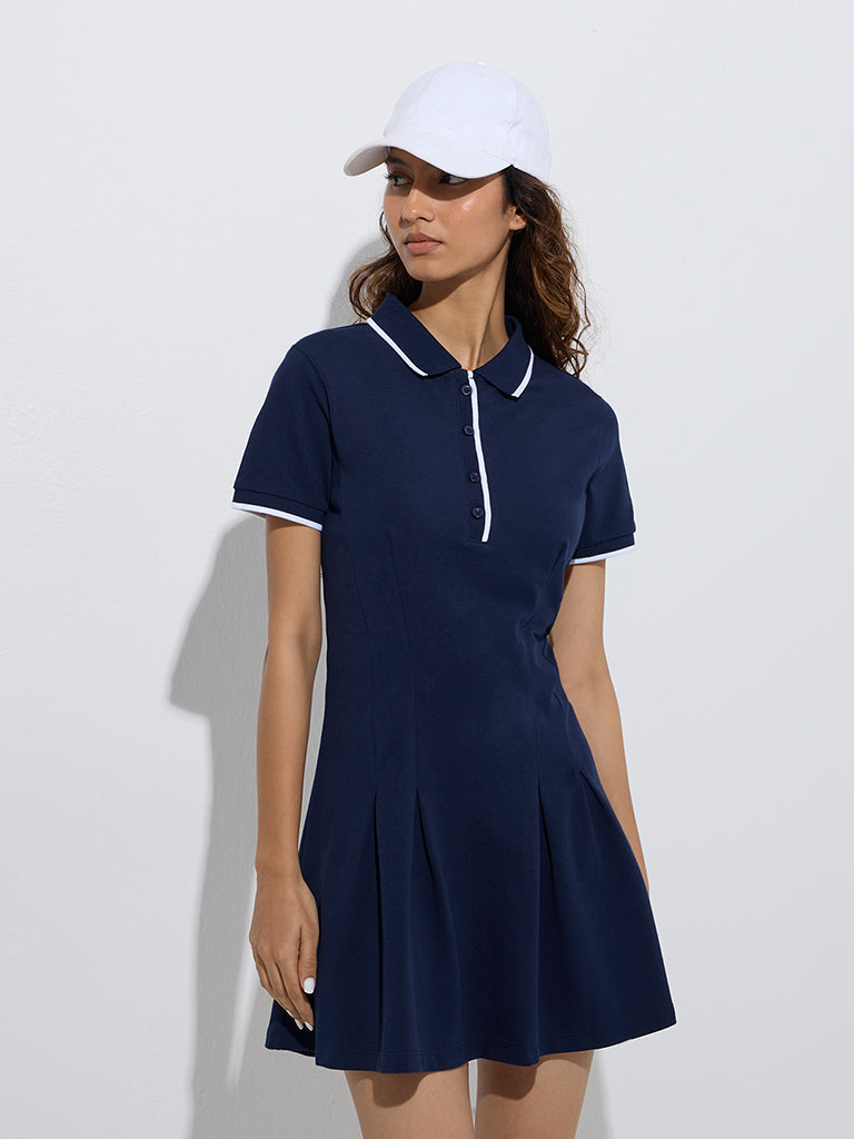 Be the first to review “Studiofit Navy Pleated A-Line Dress”
