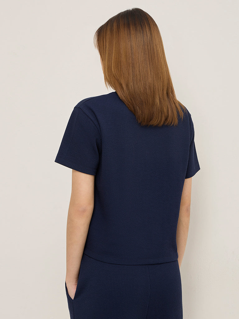 Studiofit Navy Seersucker T-Shirt