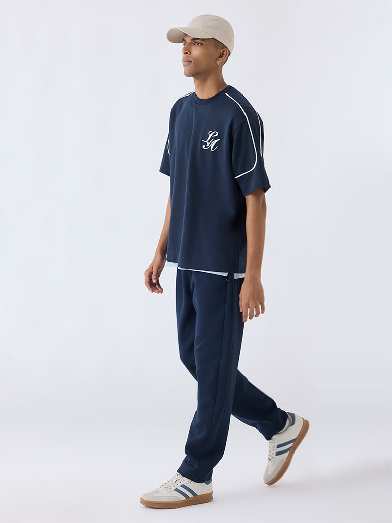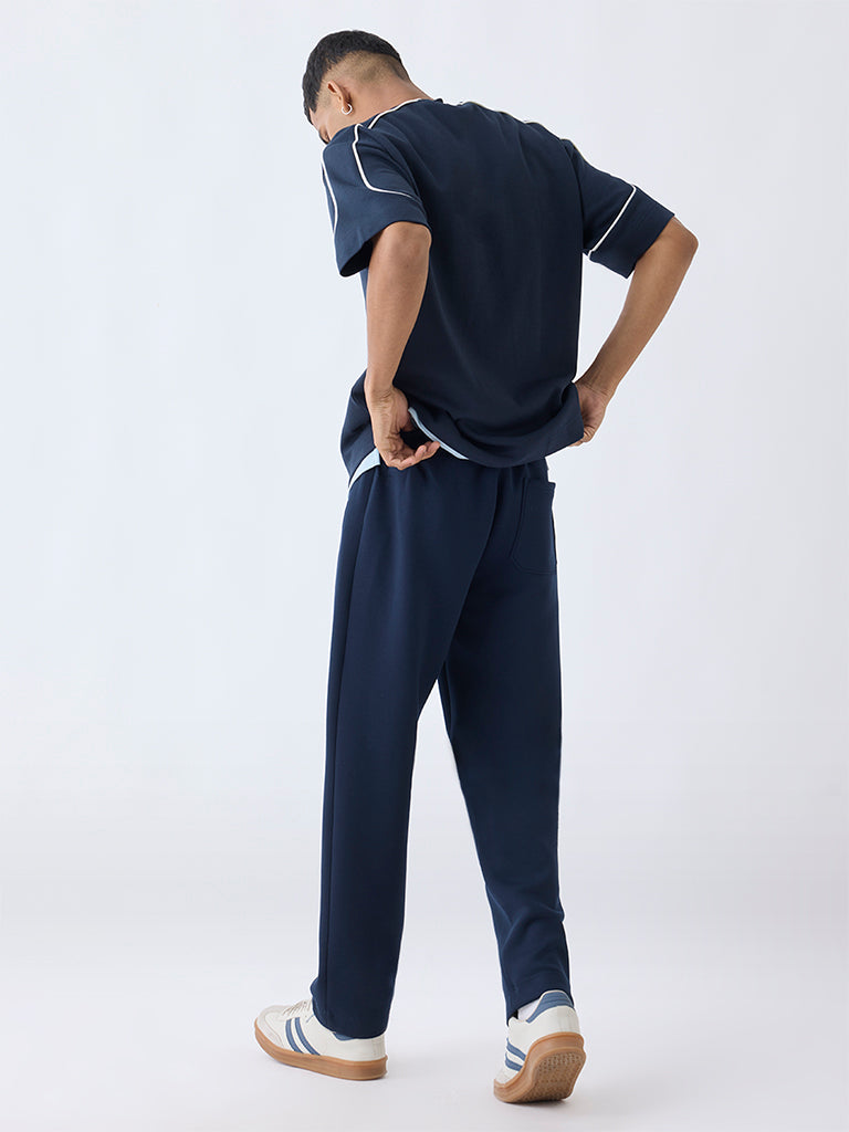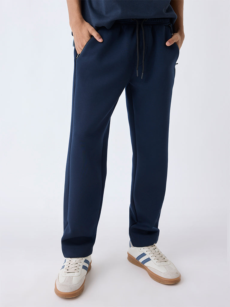 Studiofit Navy Solid Relaxed-Fit Mid-Rise Track Pants
