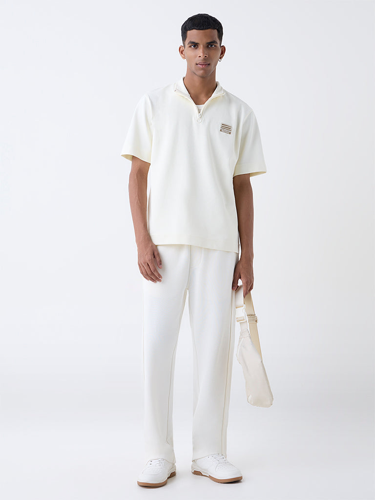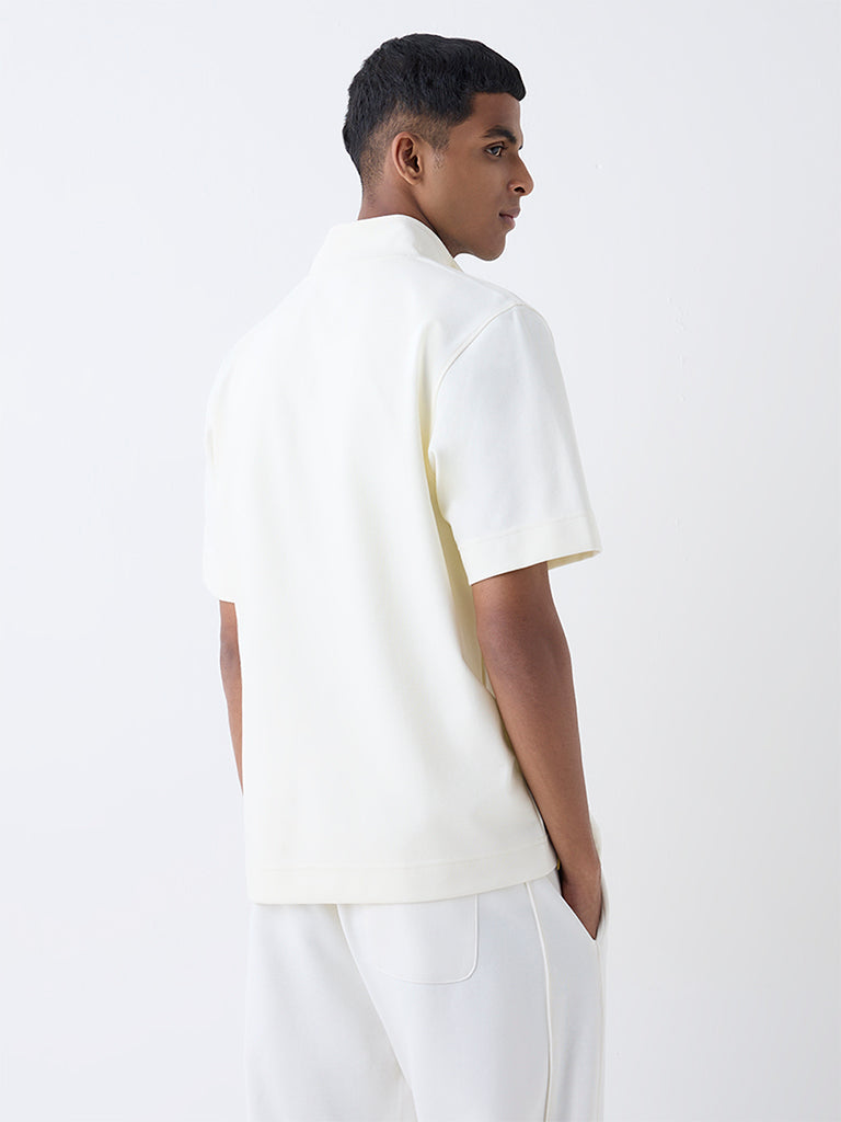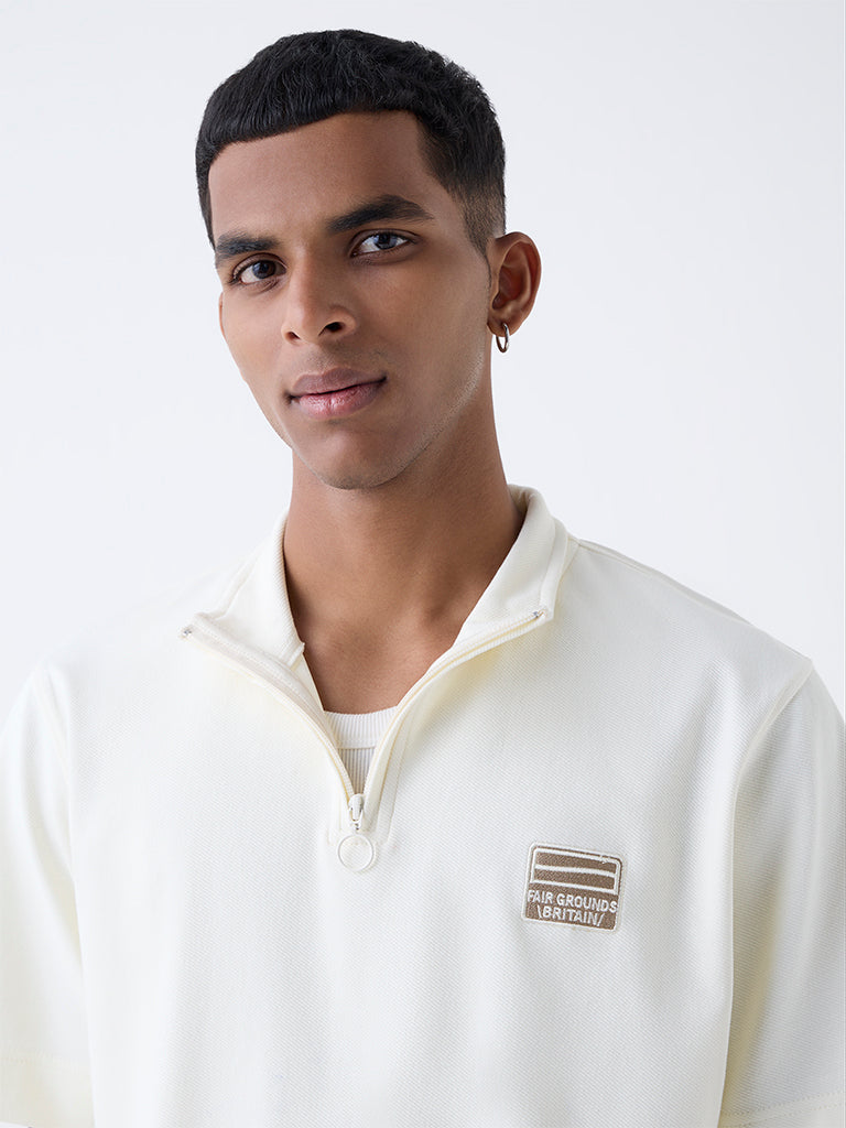 Studiofit Off-White Quarter-Zip Relaxed-Fit Cotton-Blend T-Shirt