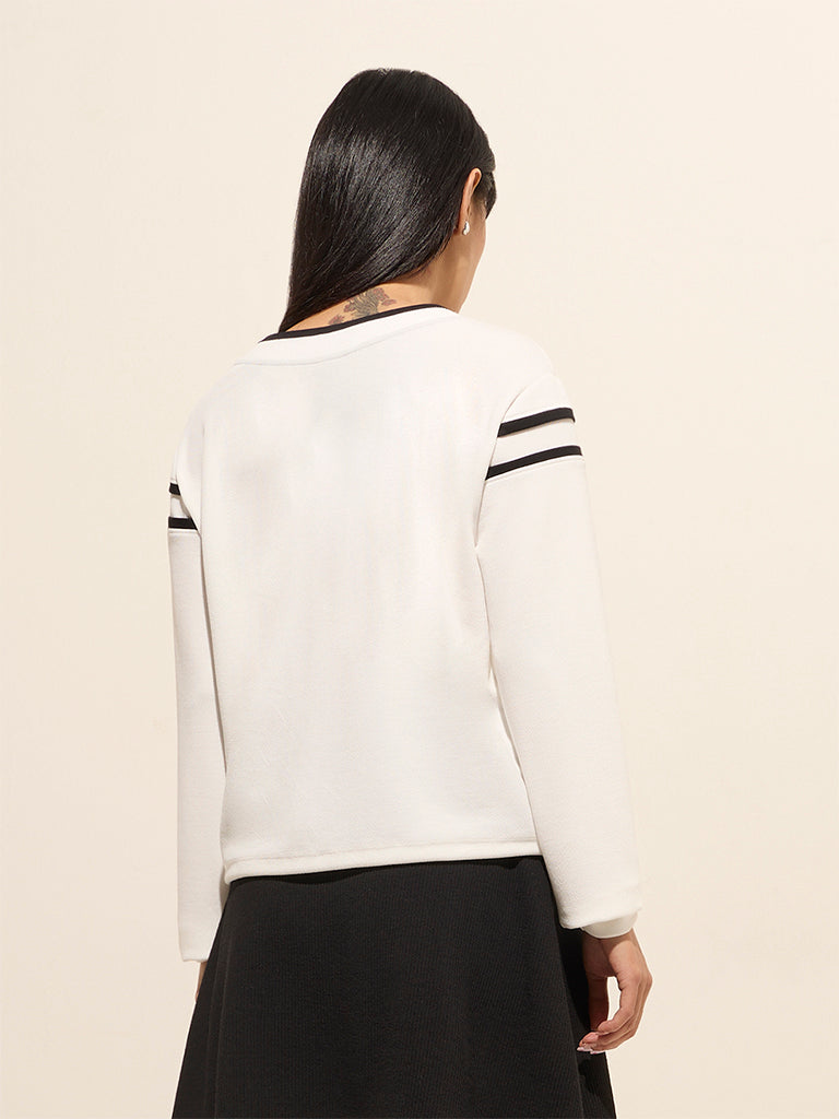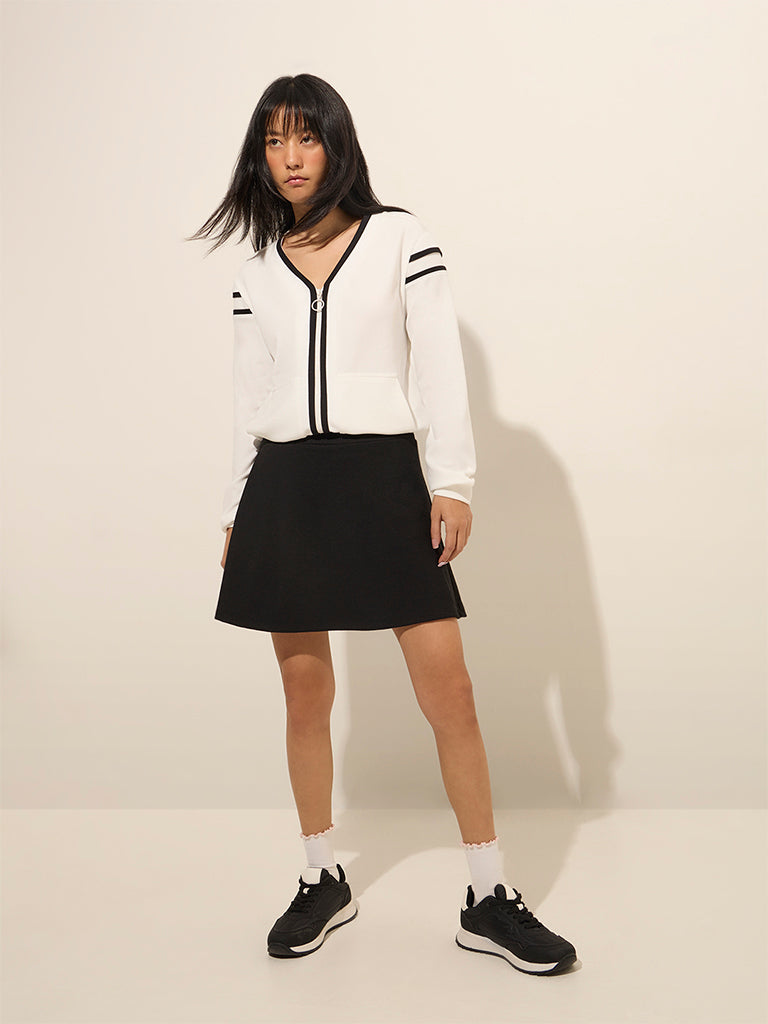 This off-white jacket from Studiofit is made from a lightweight fabric for uninterrupted comfort. It features a V-neck that extends to a zipper placket and full sleeves. The kangaroo pockets at the front render a functional bonus.