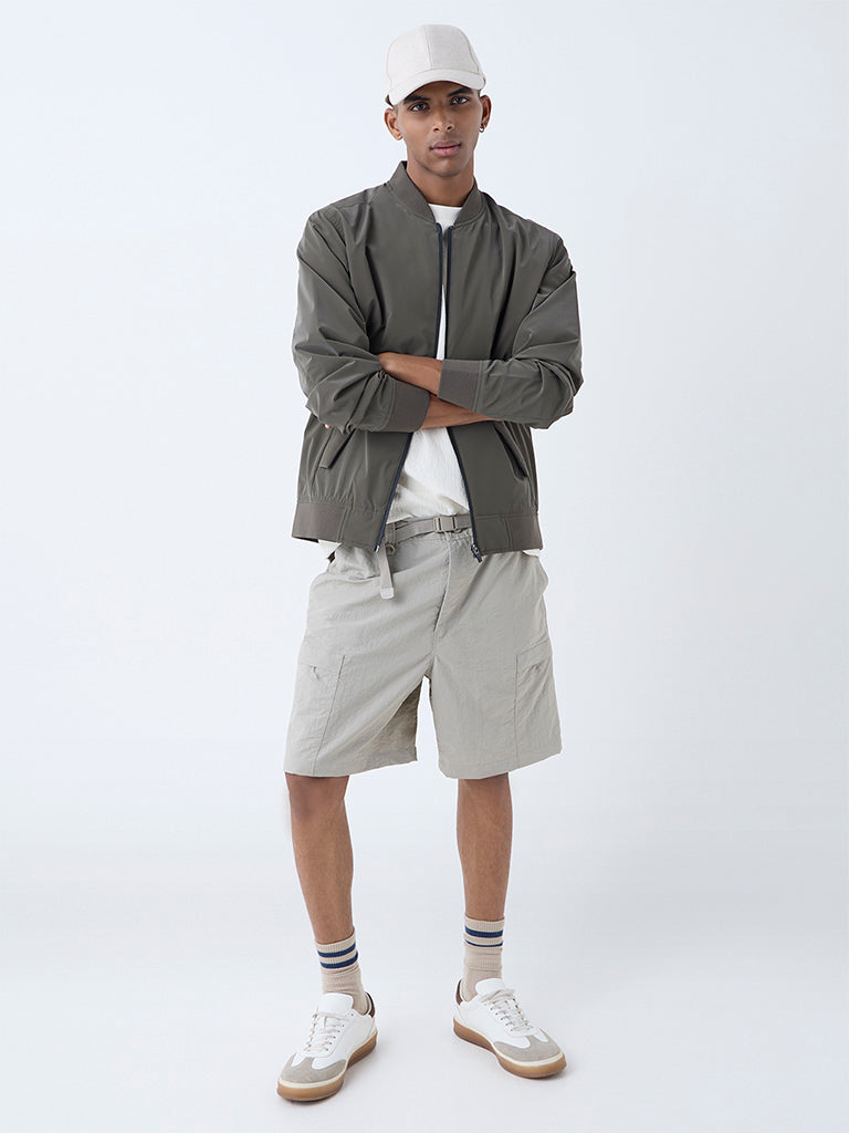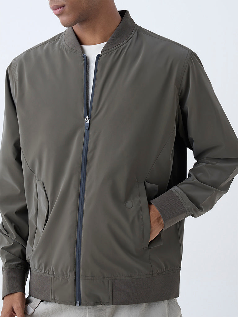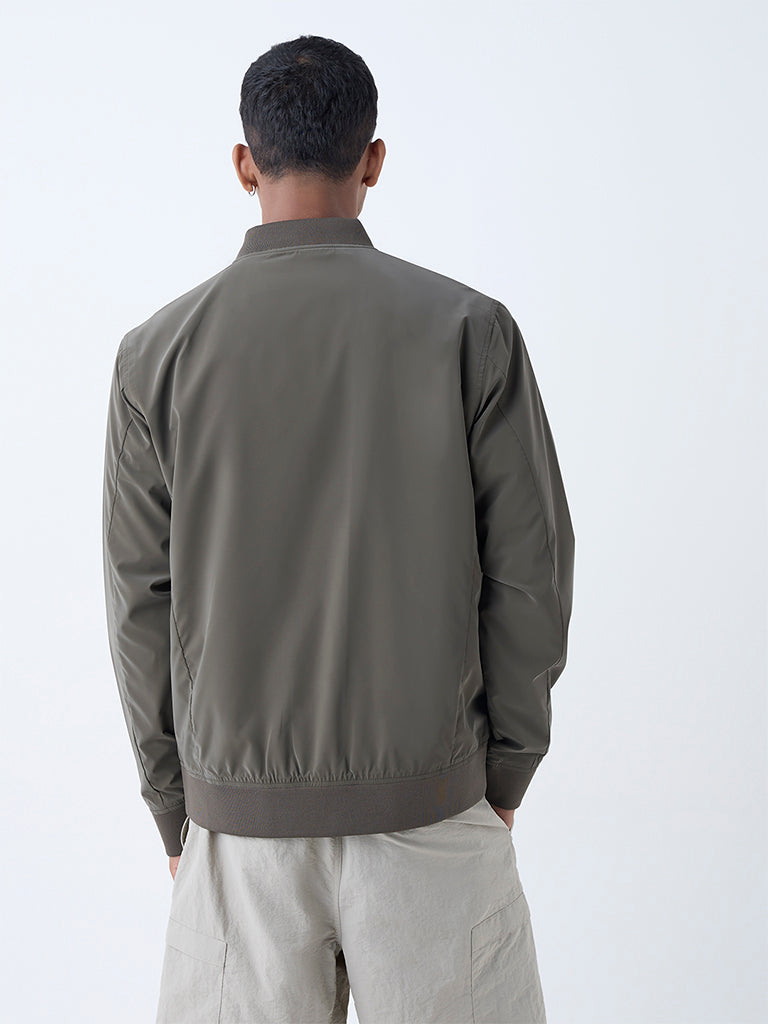 Studiofit Olive Solid Relaxed-Fit Bomber Jacket