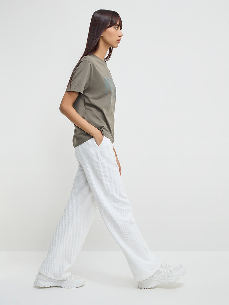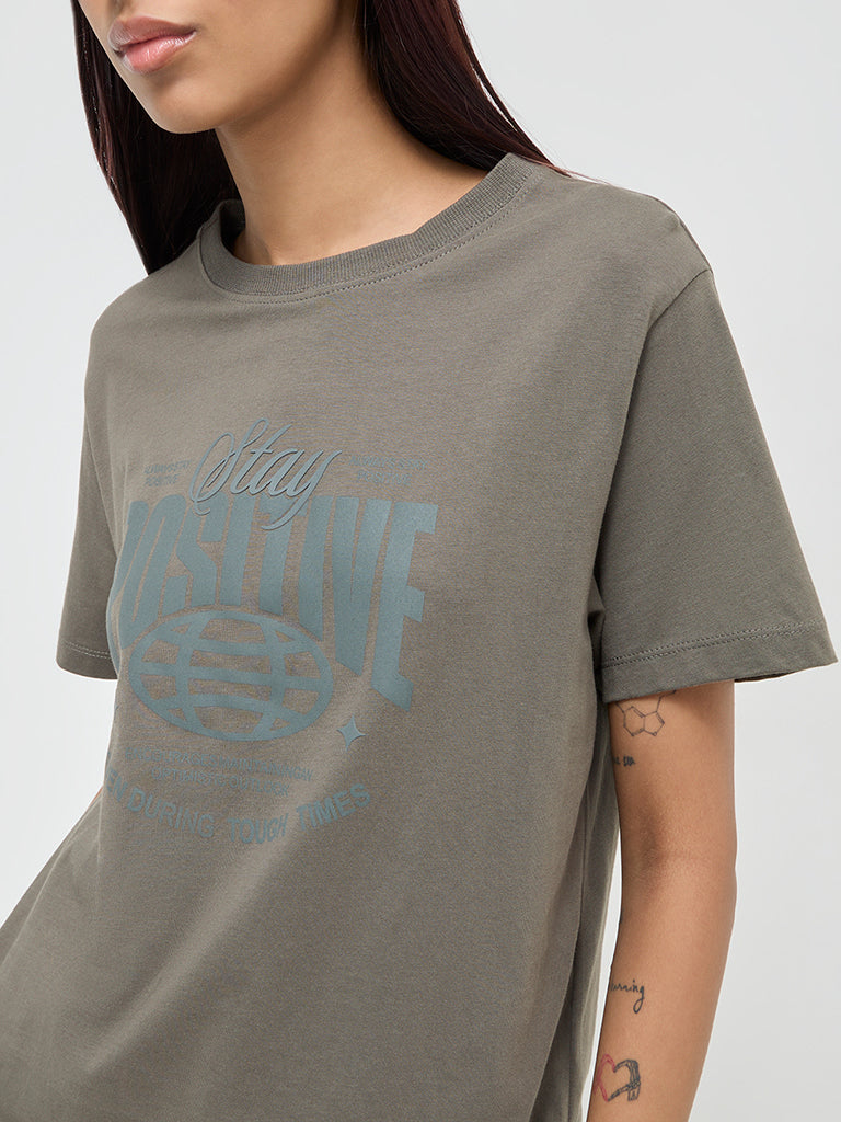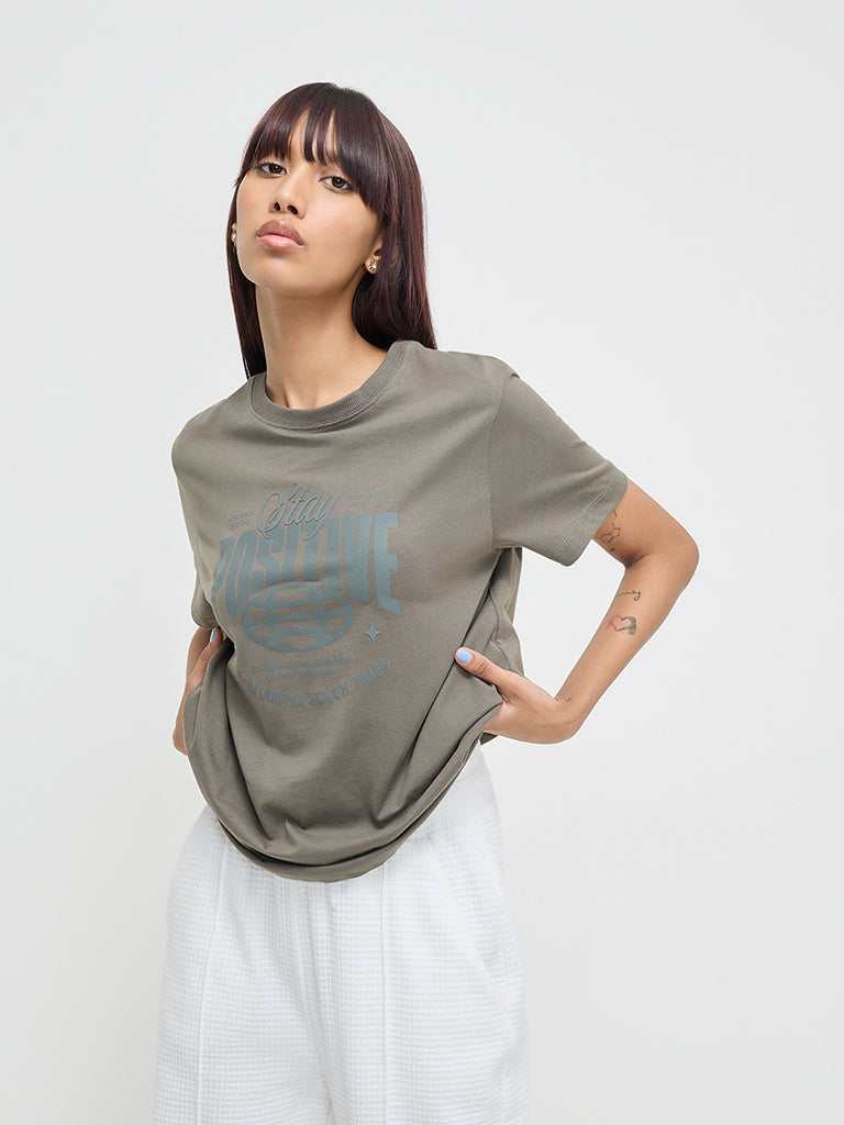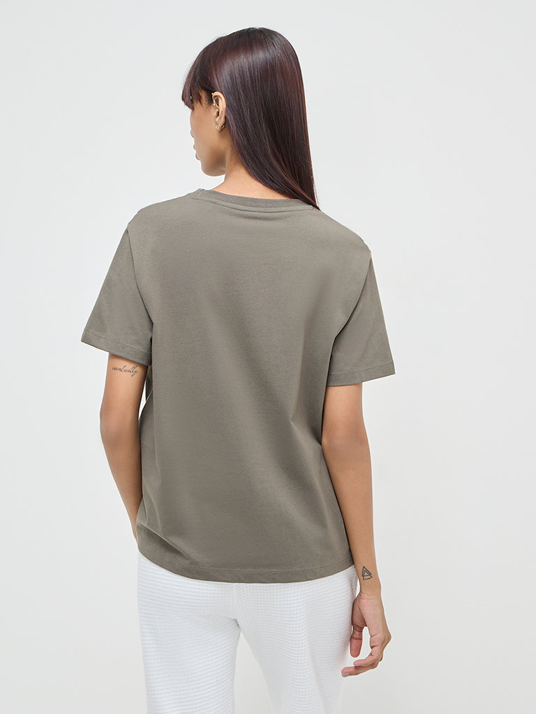 Studiofit Olive Text-Printed Cotton T-Shirt