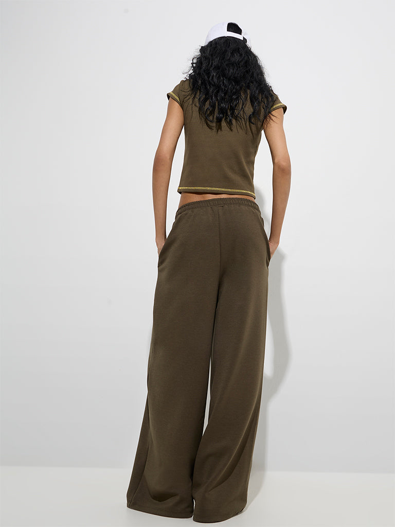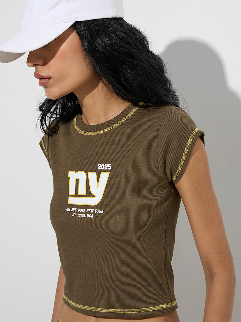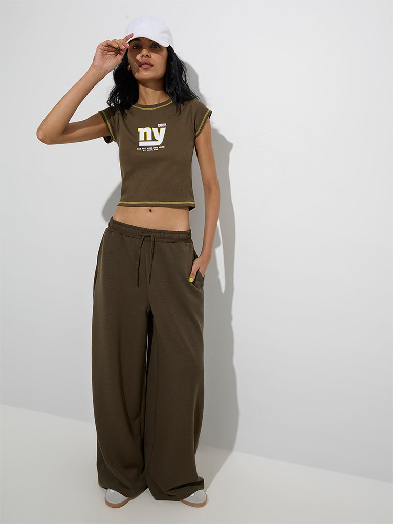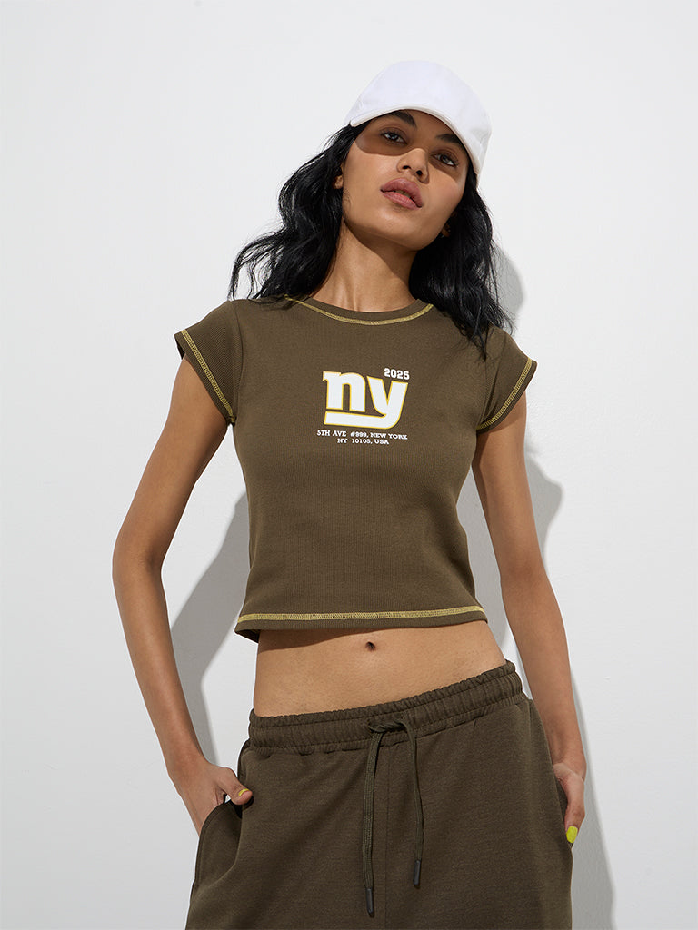 Studiofit Olive Typographic Cotton-Blend T-Shirt