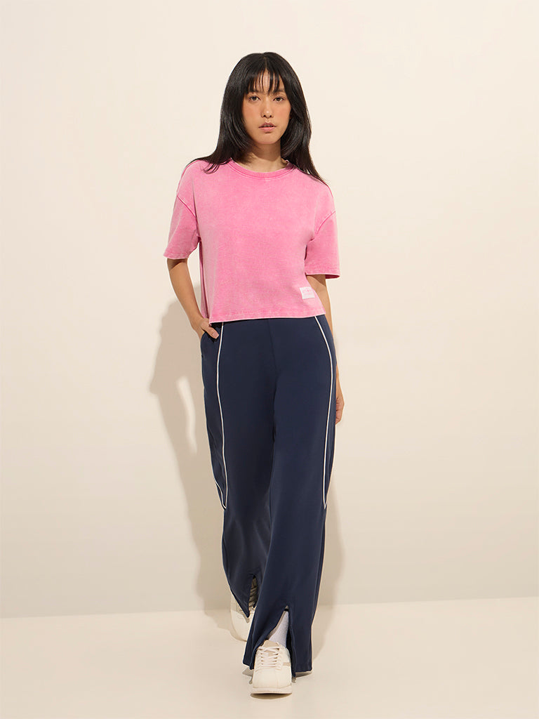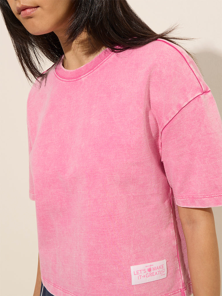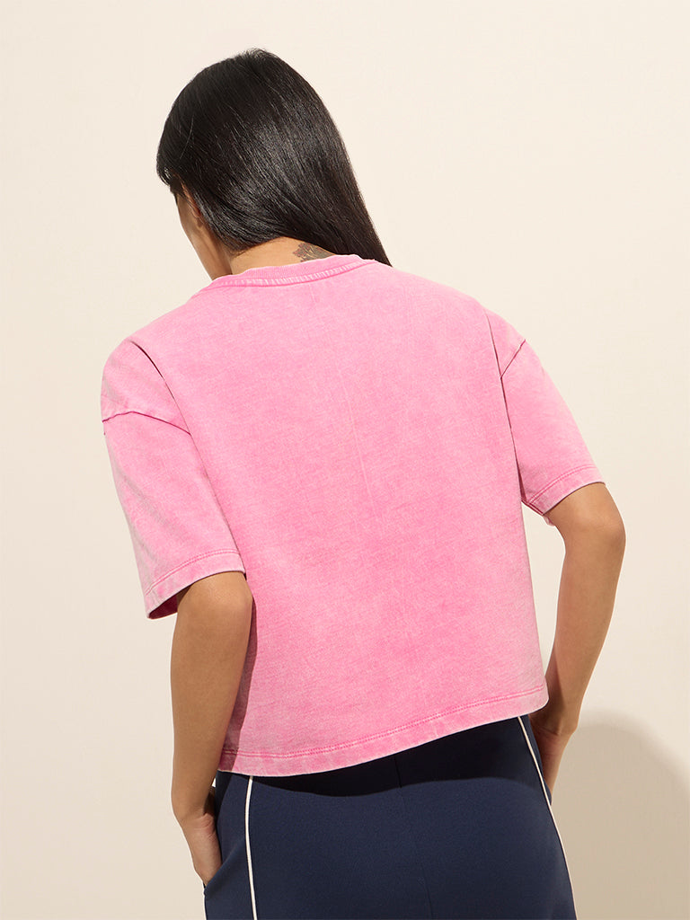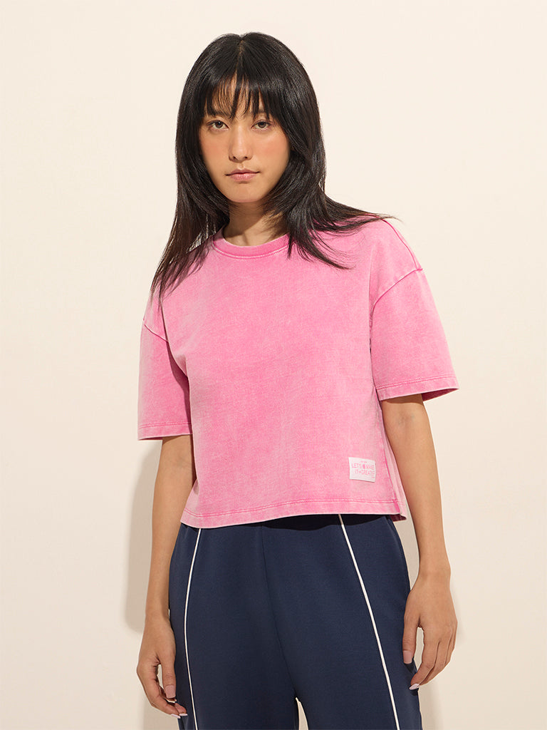 Studiofit Pink Solid Cotton T-Shirt