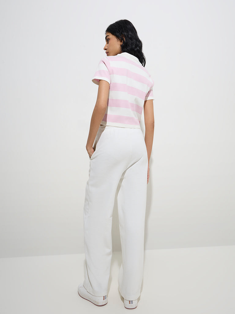 Studiofit Pink Striped Cotton-Blend T-Shirt