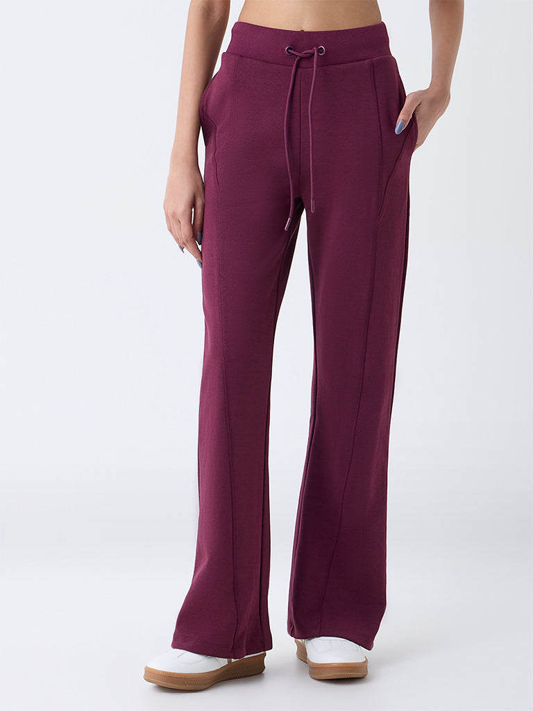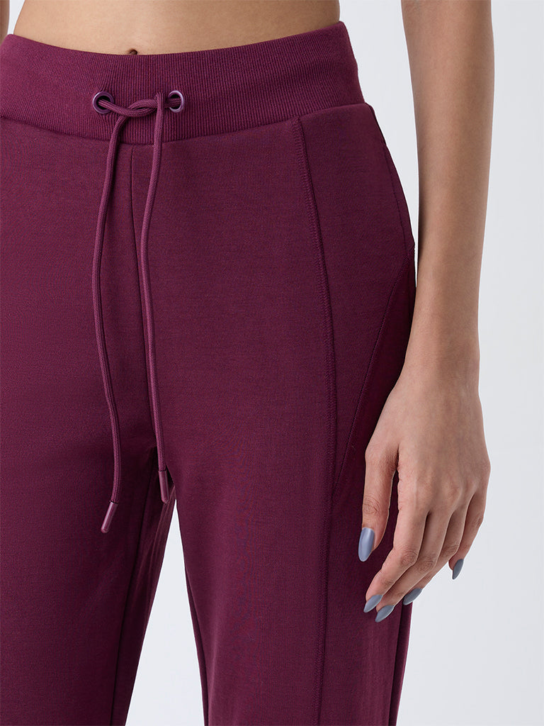 Designed for easy movement. these plum track pants from Studiofit are styled with a high-rise waist and adjustable drawstrings. ensuring a secure fit through the day. Crafted from soft. stretchable fabric. they feature side pockets and a straight-leg profile for a relaxed yet streamlined finish.