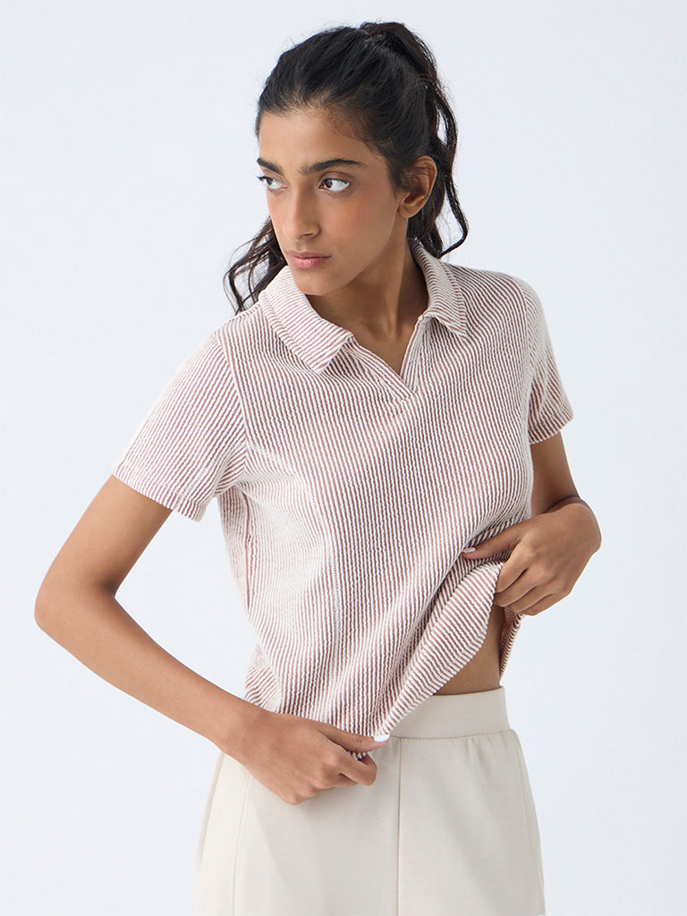 Be the first to review “Studiofit Rust Striped Cotton-Blend T-Shirt”