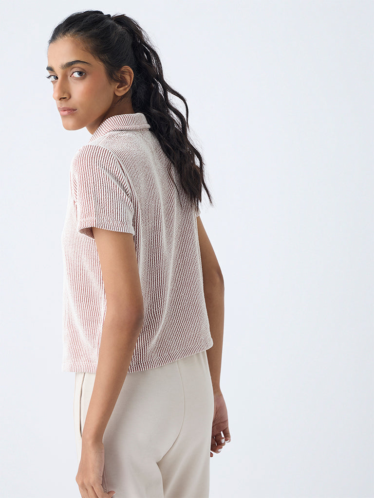 Studiofit Rust Striped Cotton-Blend T-Shirt