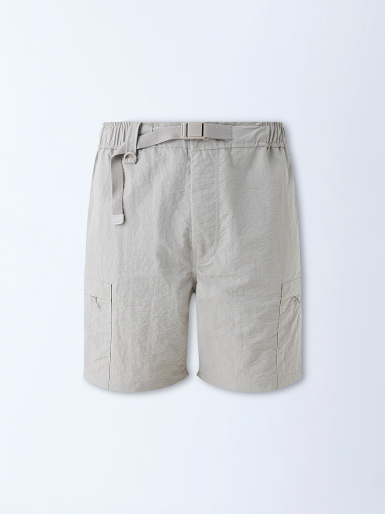 Studiofit launches these taupe shorts. combining utility and comfort in a relaxed profile. Crafted from an ultra-lightweight fabric. they feature a smooth elastic waistband with an attached buckled belt. a button closure. and a zip fly. Multiple functional pockets complete the design. making them a versatile choice for everyday wear or active routines.
