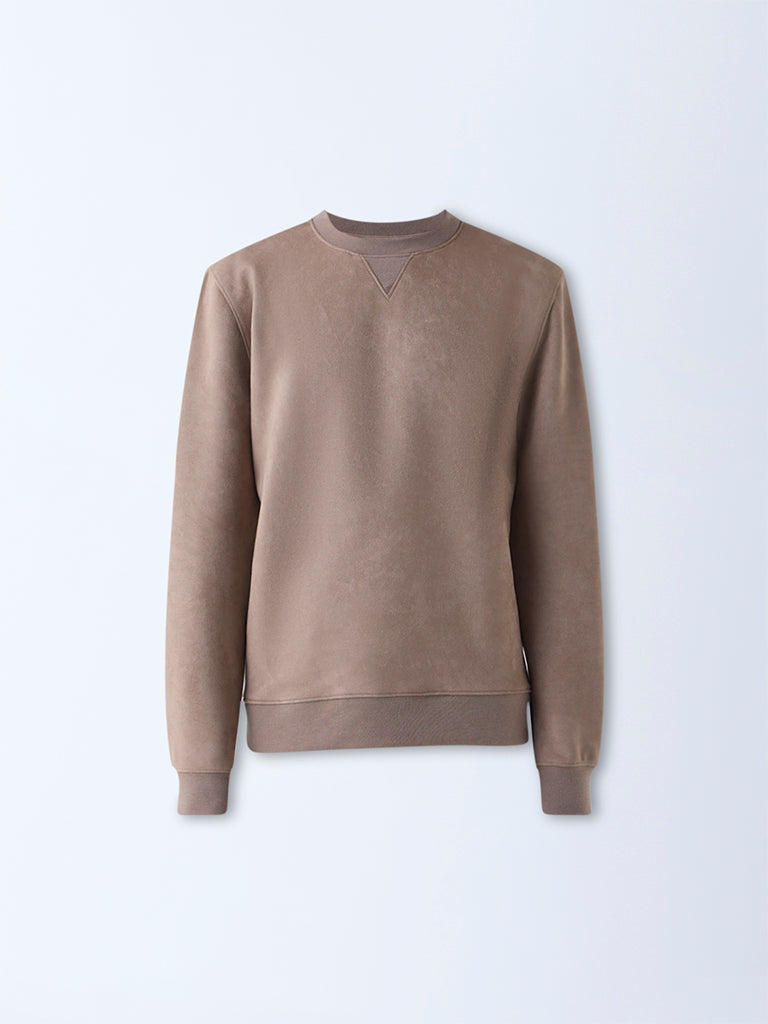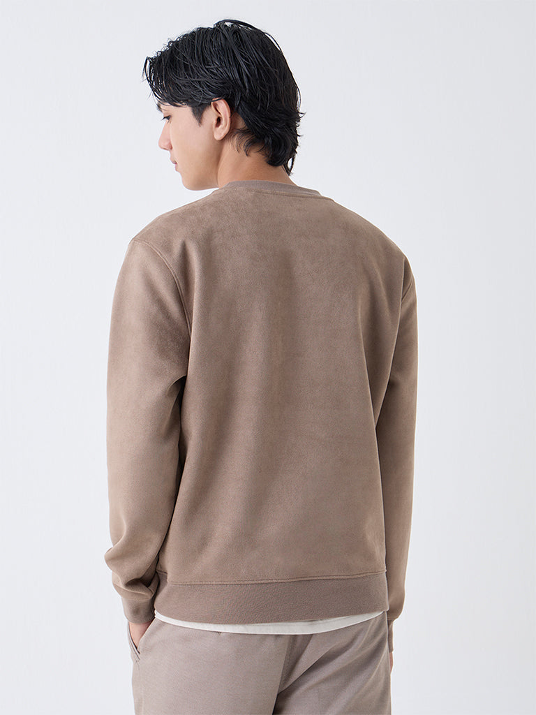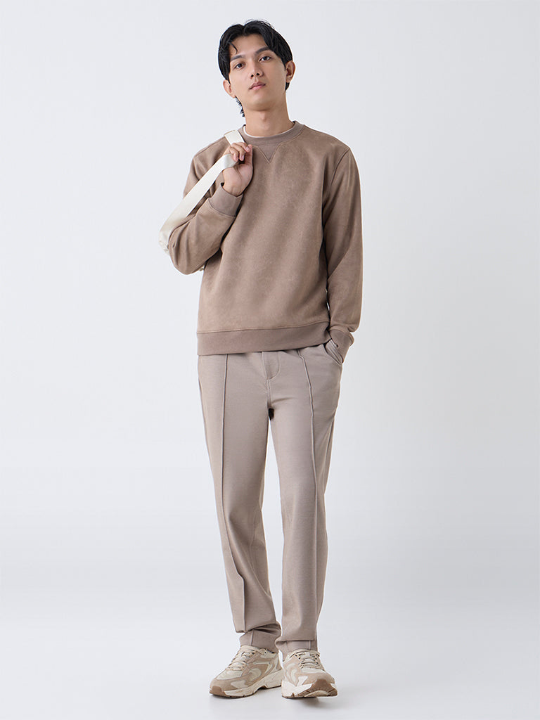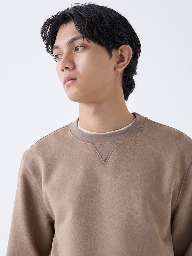 Studiofit Taupe Solid Relaxed-Fit Suede Sweatshirt