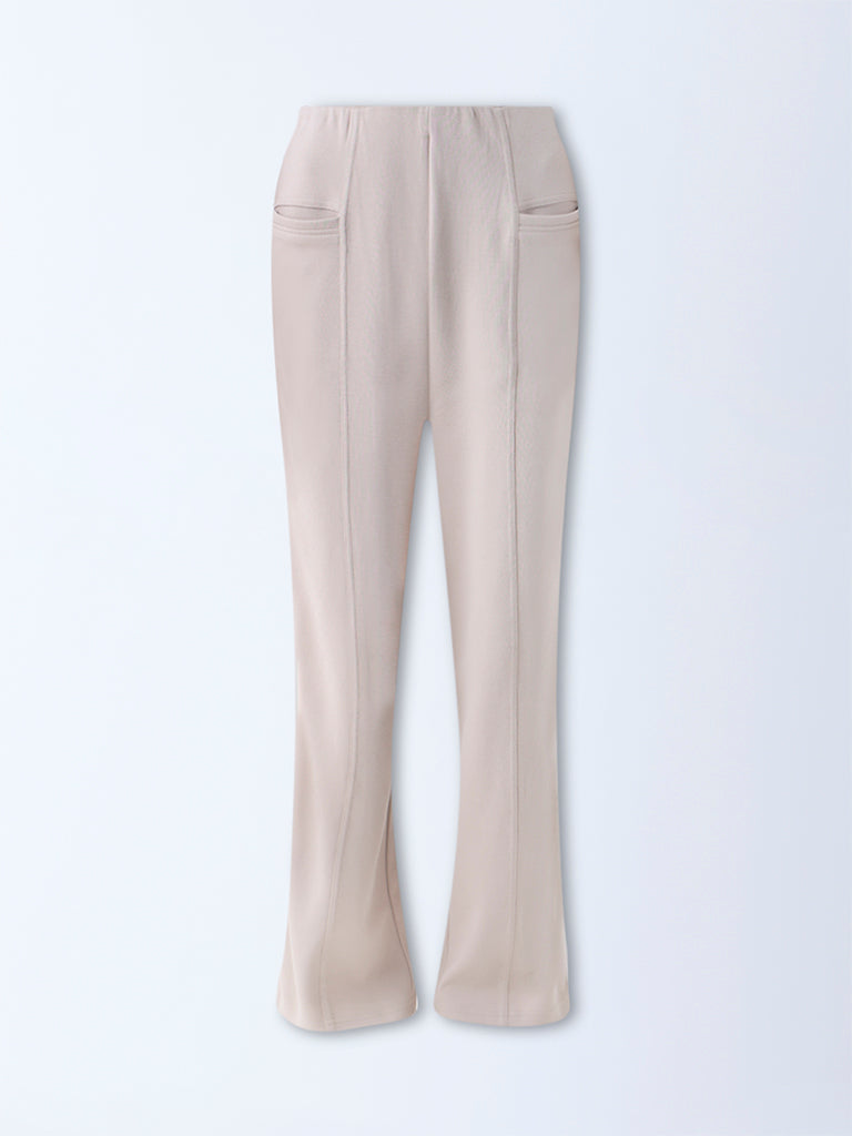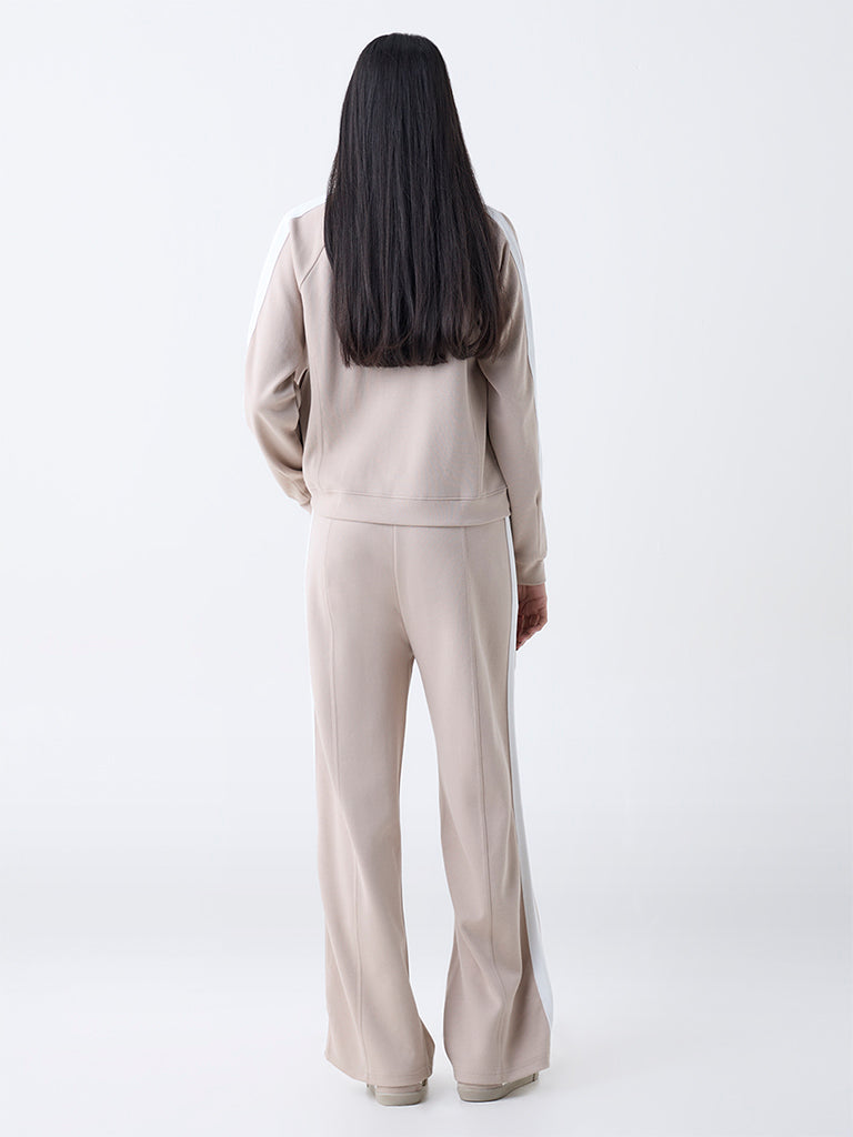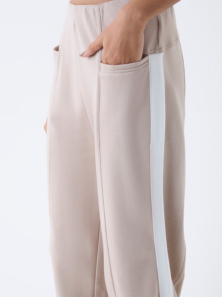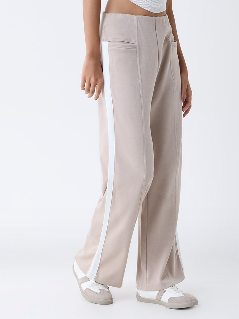 Athleisure meets polish in these taupe striped high-rise track pants from Studiofit. defined by sleek side stripes and a smooth elastic waistband. Finished with practical side pockets. they offer equal parts comfort and style. making them a go-to choice for both workouts and off-duty looks.