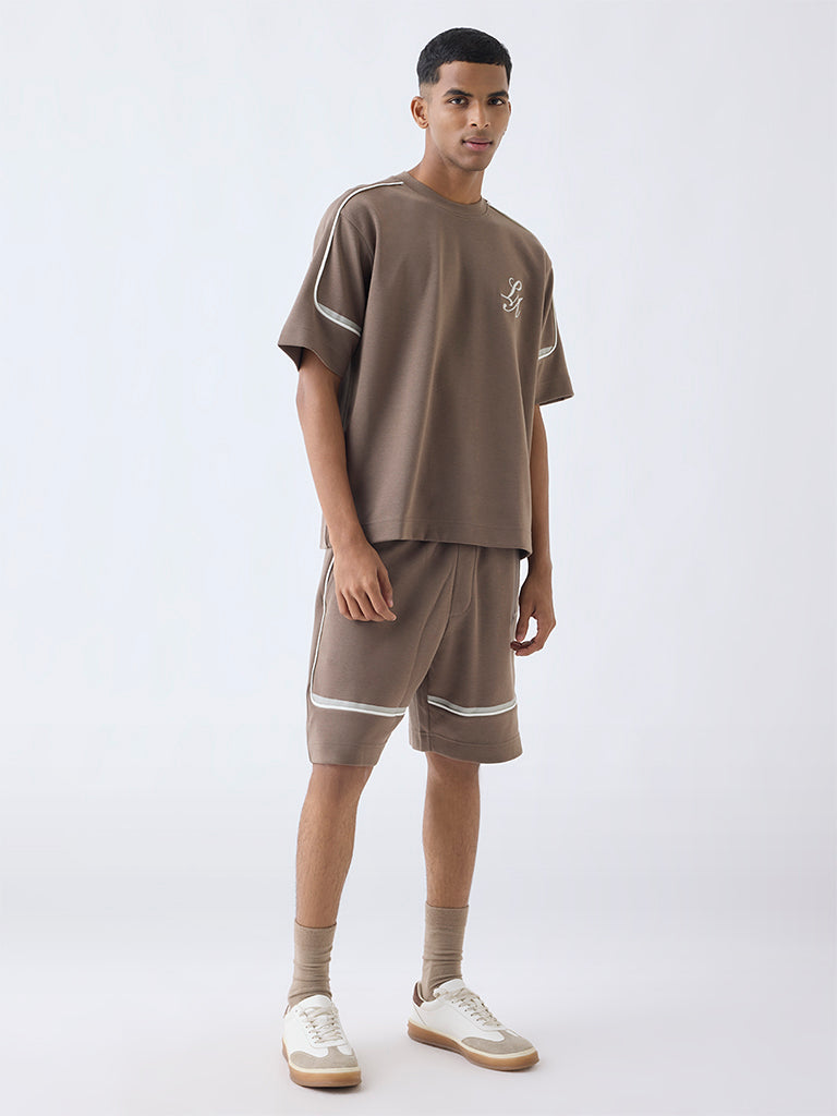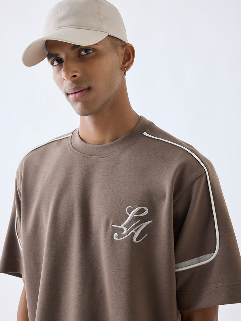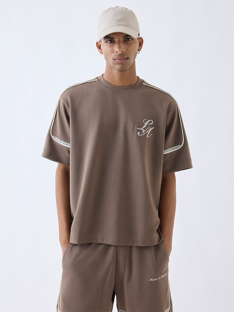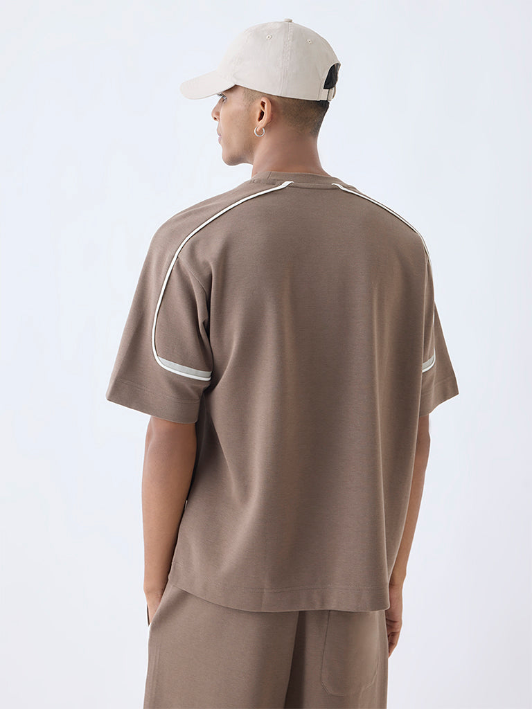Studiofit Taupe Text Design Relaxed-Fit T-Shirt