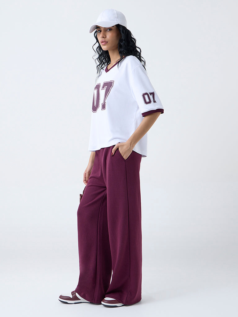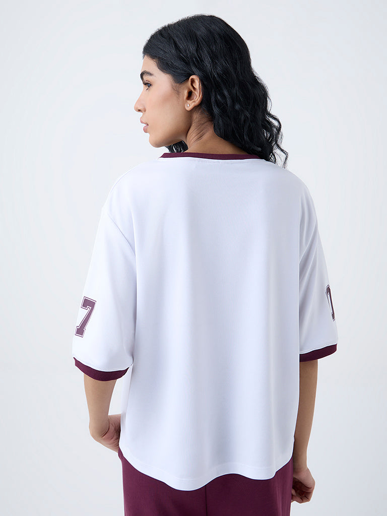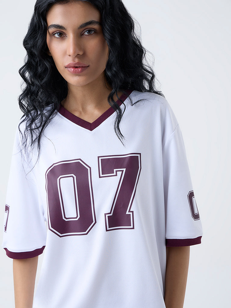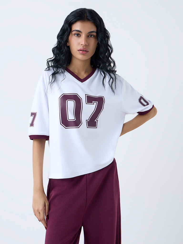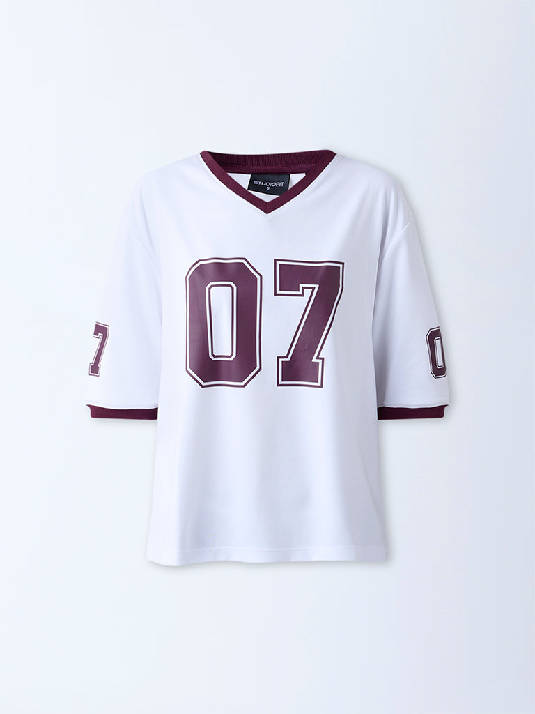 Studiofit White Numerical Printed T-Shirt