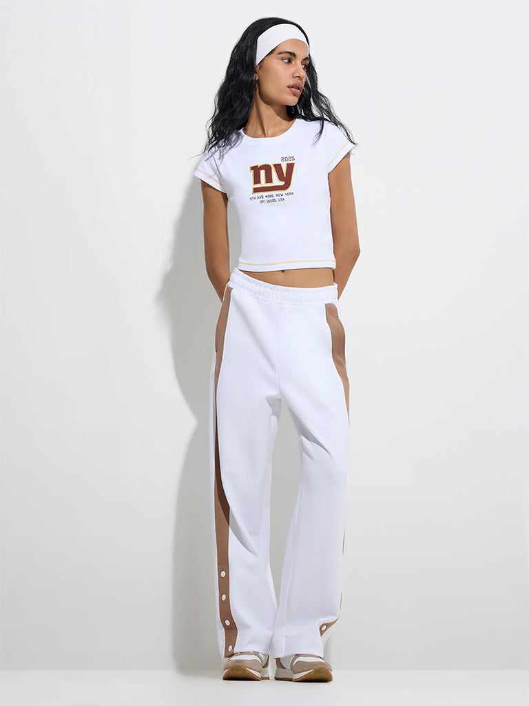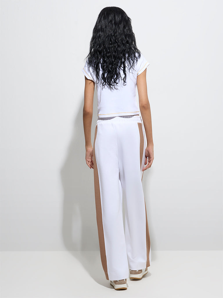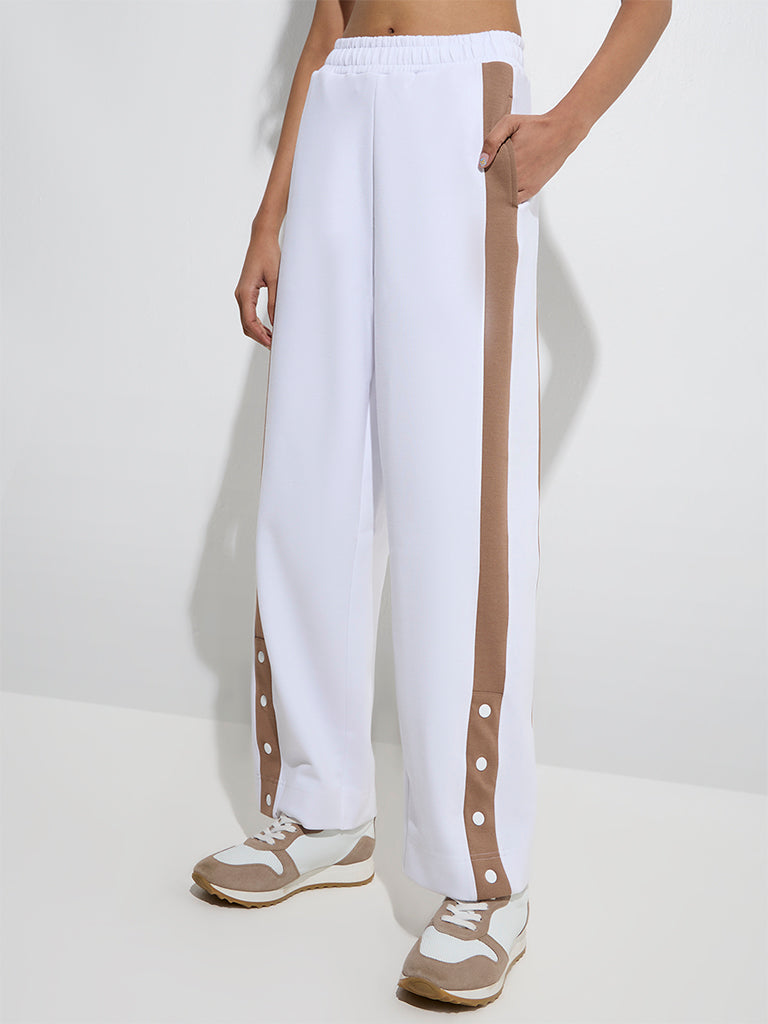 Studiofit White Panel Detailed High-Rise Track Pants