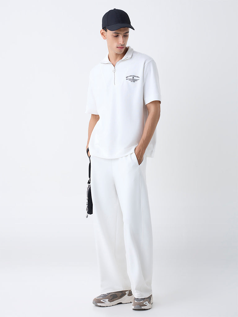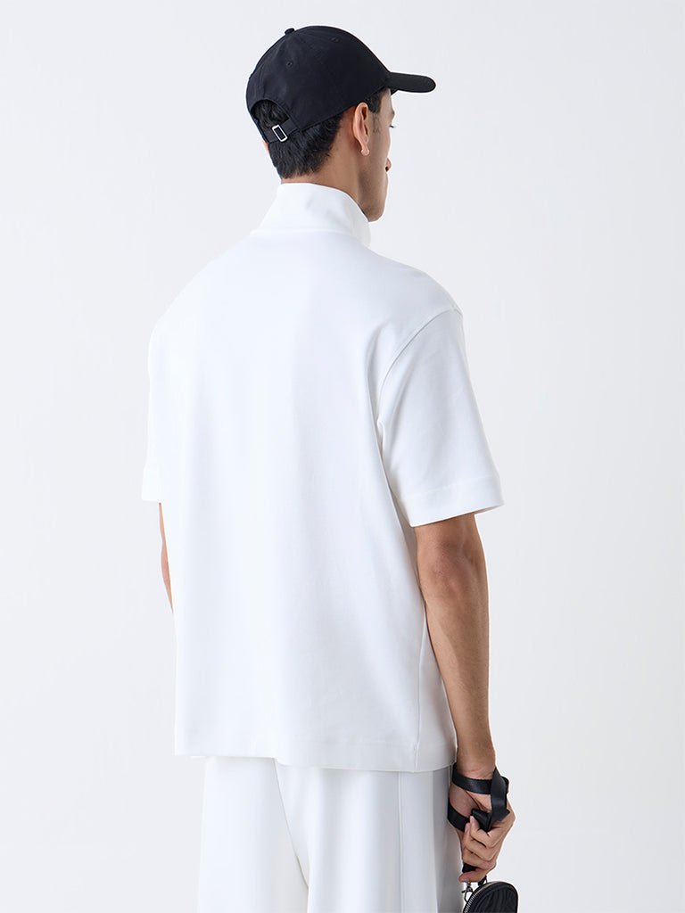 Studiofit White Relaxed-Fit Cotton-Blend Quarter-Zip T-Shirt