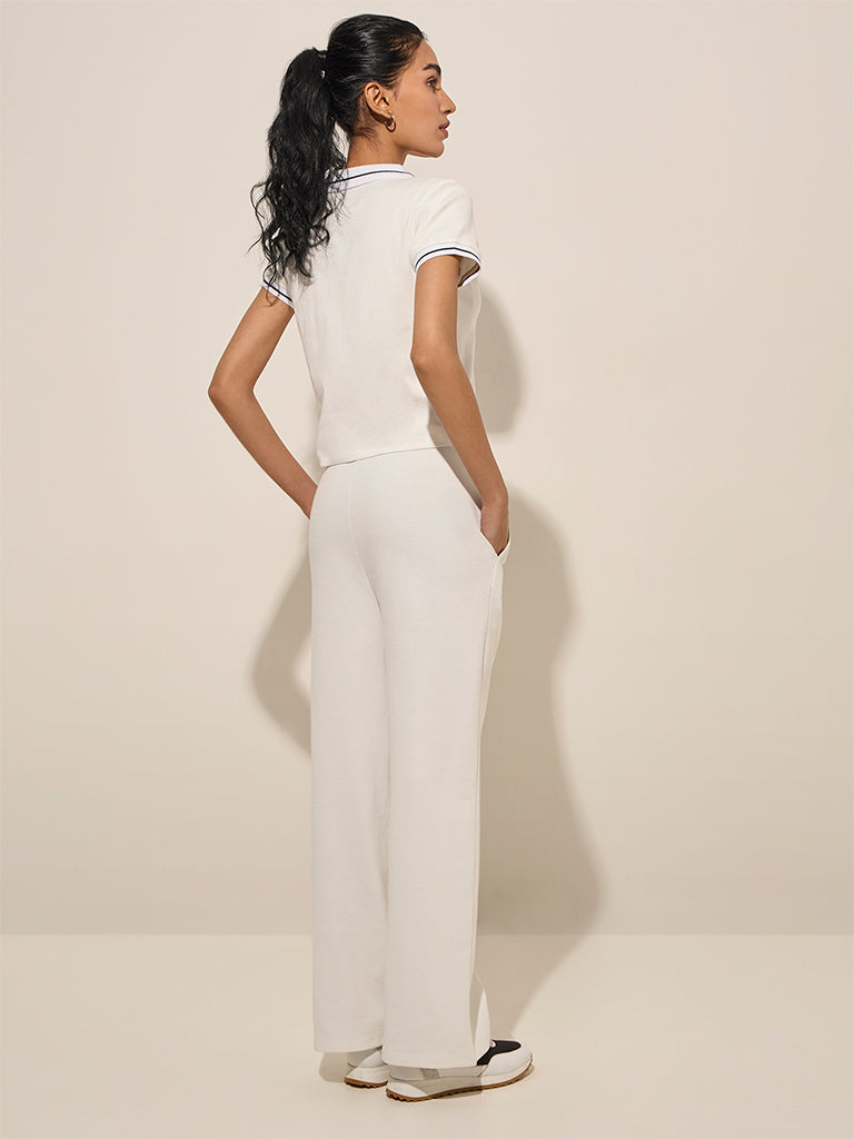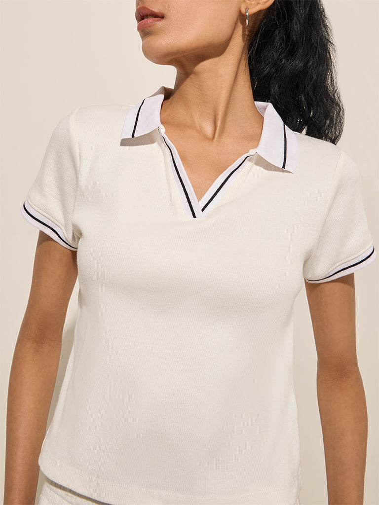 Studiofit White Ribbed Cotton-Blend Polo T-Shirt