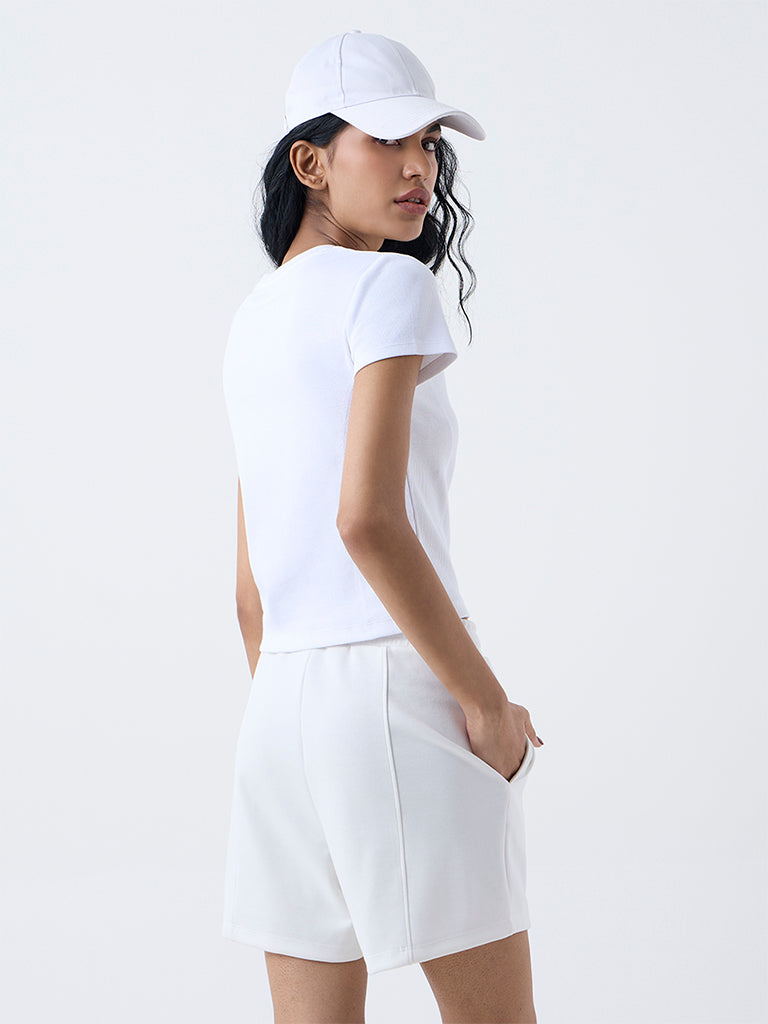 Studiofit White Ribbed Cotton-Blend T-Shirt