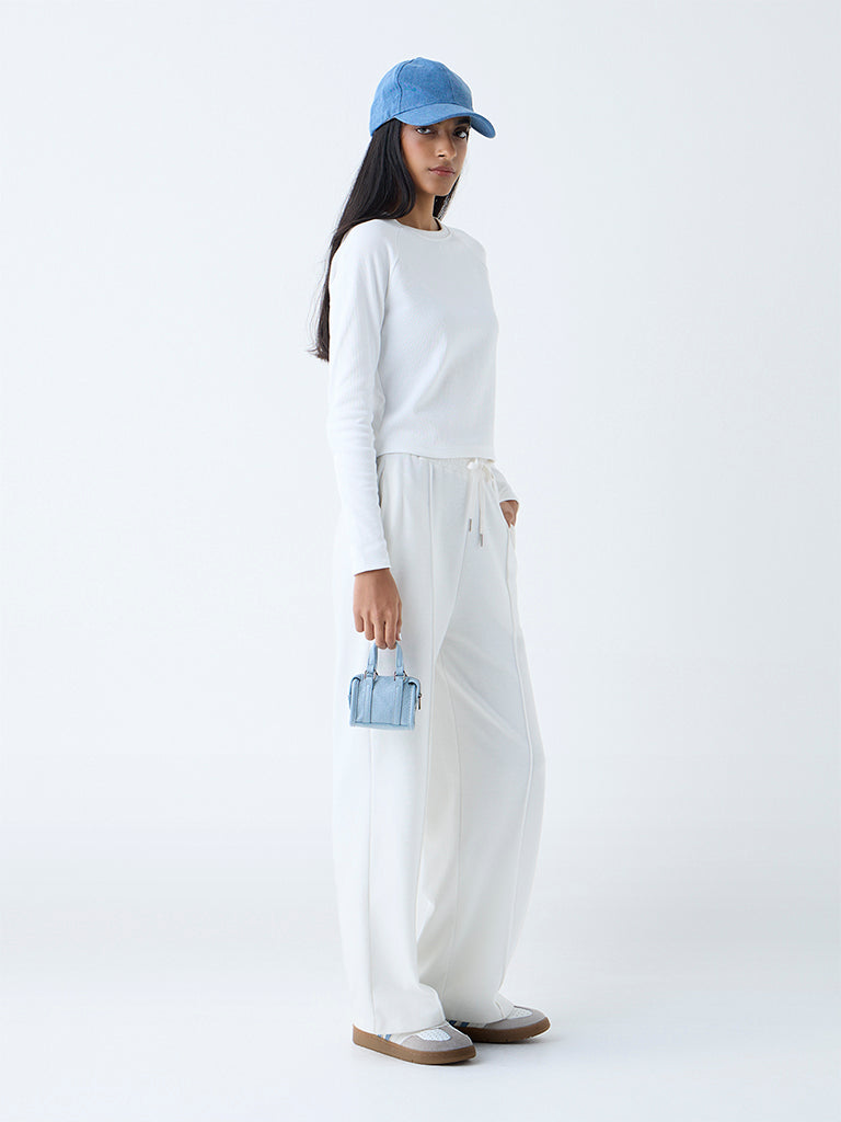 Studiofit White Ribbed Cotton-Blend T-Shirt