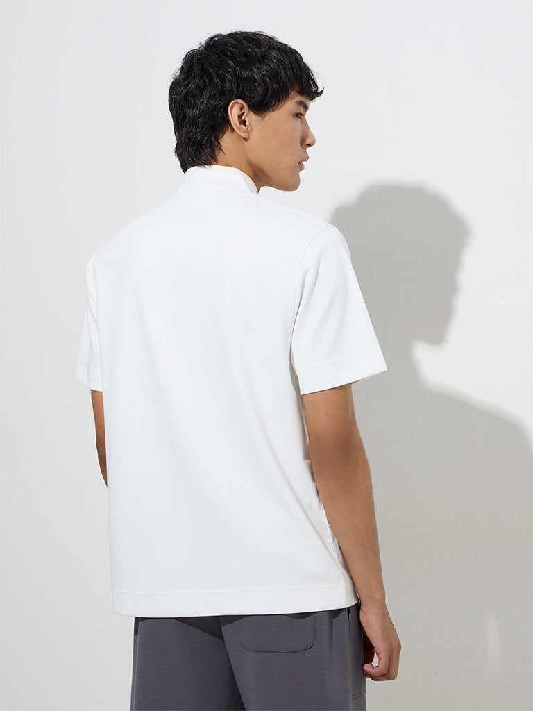 Studiofit White Solid Quarter Zip Cotton-Blend T-Shirt