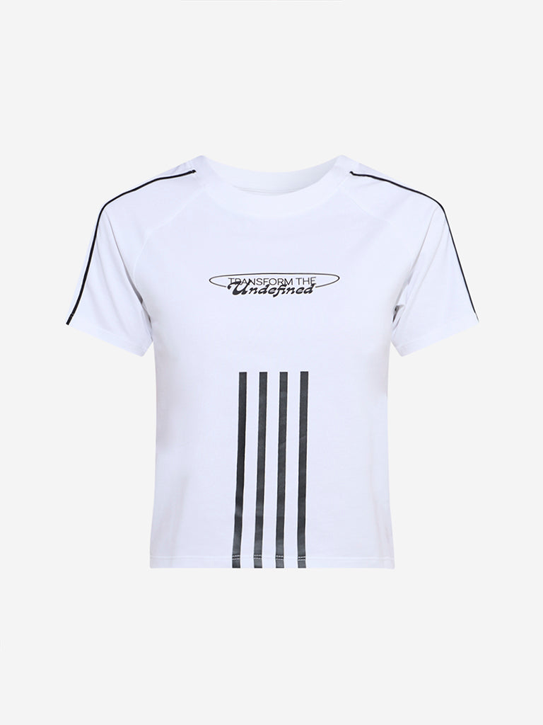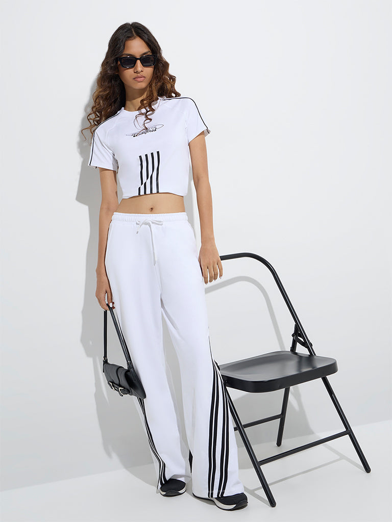 Studiofit White Text Pattern Cotton-Blend T-Shirt