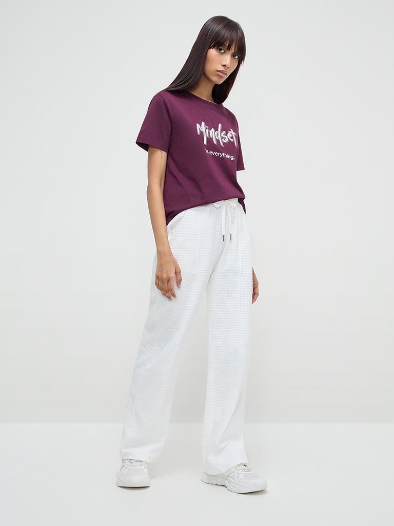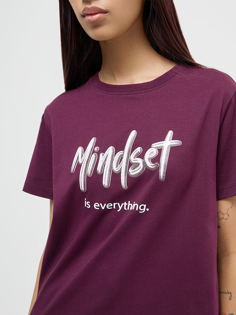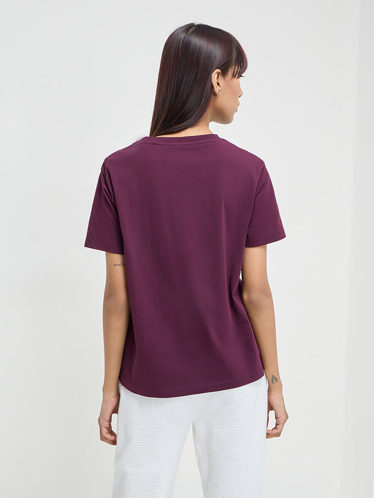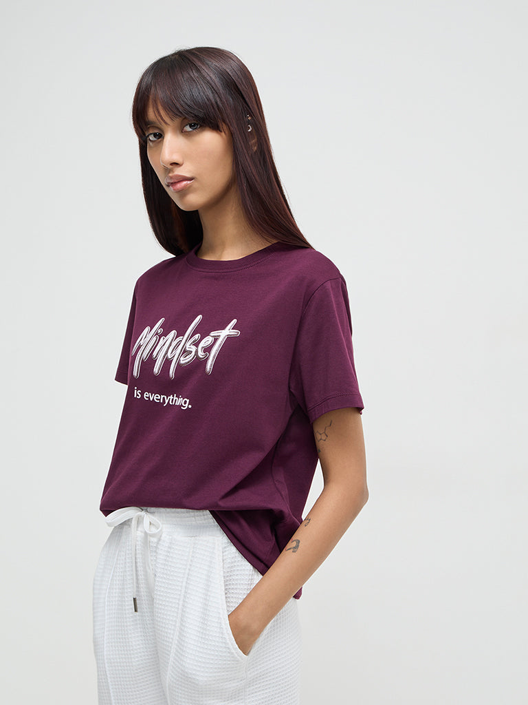 Be the first to review “Studiofit Wine Text Printed Cotton T-Shirt”