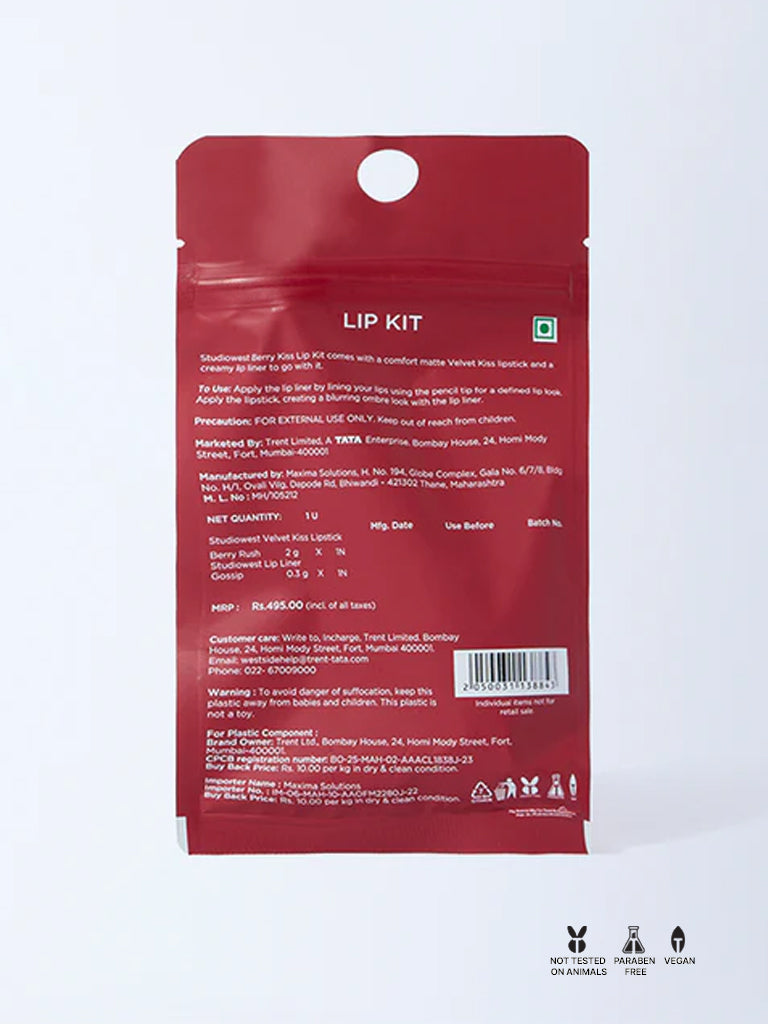 This Studiowest Berry Kiss Lip Kit is your go-to duo for effortlessly defined lips. Featuring a richly pigmented comfort-matte velvet lipstick and a creamy lip liner. this set is designed for smooth application and long-lasting wear. The lipstick delivers bold colour with a soft. velvety finish. while the liner shapes and enhances for a fuller. more polished pout. Whether you’re going for everyday elegance or a statement look. this kit makes it easy.