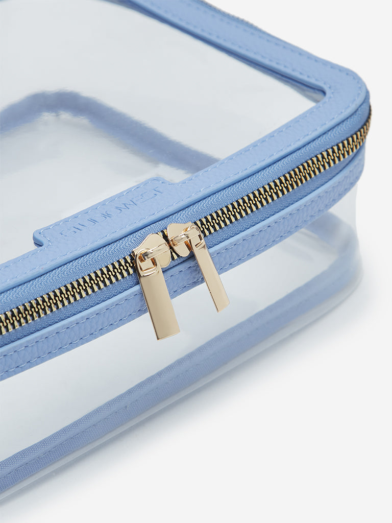 Stay effortlessly organized with this Studiowest travel pouch in blue. This large pouch provides ample space for all your travel essentials. The calming blue colour makes it your stylish travel partner. Designed with a secure zipper closure. this pouch keeps your belongings safe and neatly arranged. Whether you’re packing for an extended trip or simply need a chic way to organize your everyday items. this travel pouch offers both practicality and style in a spacious. eye-catching design.