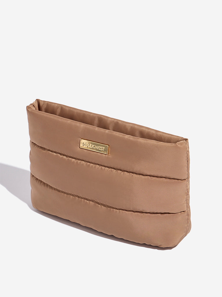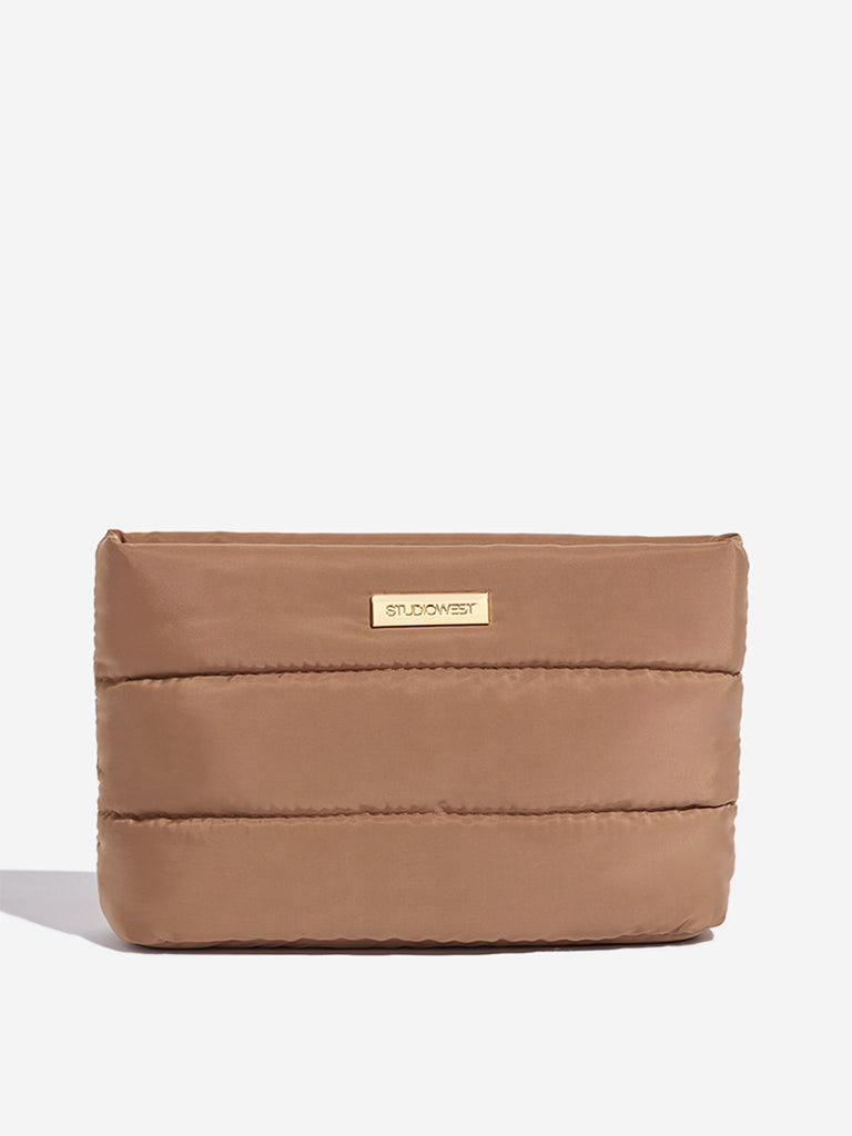 Chic. compact. and effortlessly versatile. this brown quilted makeup pouch from Studiowest is a refined essential for beauty on the go. Featuring a luxe quilted exterior and a spacious. well-structured interior. it’s designed to keep your makeup and essentials neatly stored. The secure zip closure ensures everything stays in place. making it the perfect everyday or travel companion for those who love organization with a touch of elegance.