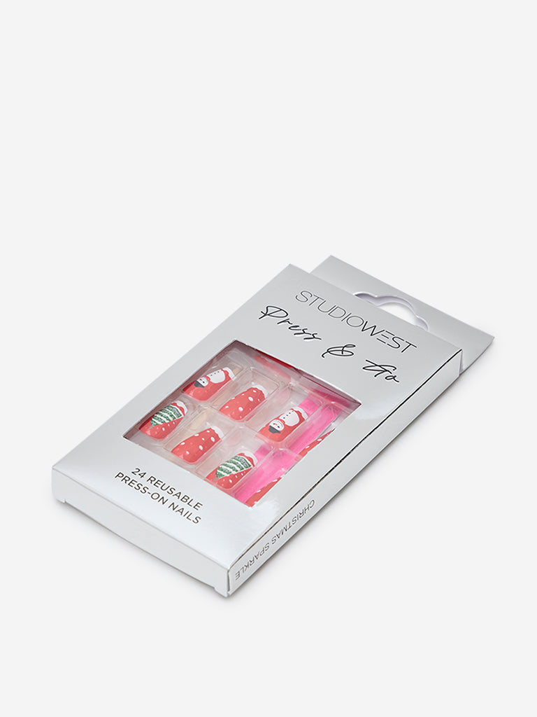 Celebrate the season in style with this presson nail set from Studiowest. Adorned with festive designs of red. green. and gold. this set brings holiday cheer to your fingertips. Whether it’s for a Christmas party or simply embracing the festive spirit. these nails sparkle with every move. Easy to apply and remove. they offer long-lasting wear. making them the perfect accessory for all your seasonal festivities. Transform your nails into a dazzling holiday masterpiece in no time.