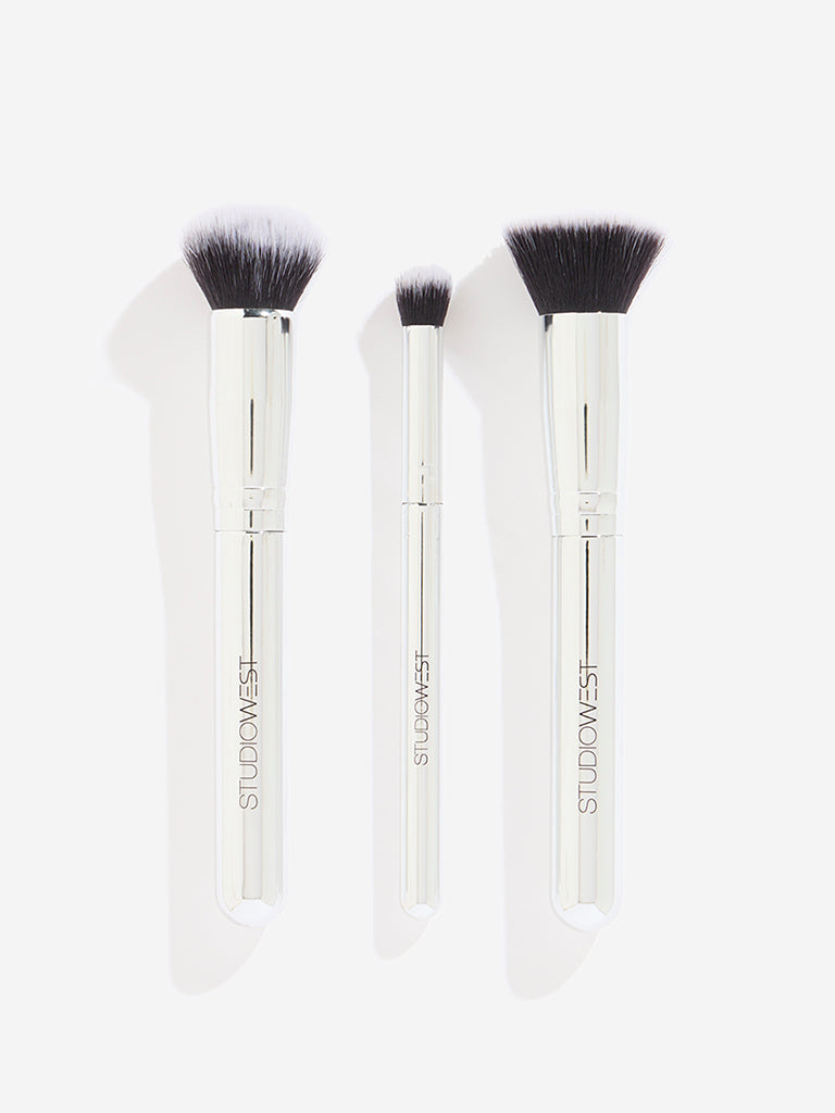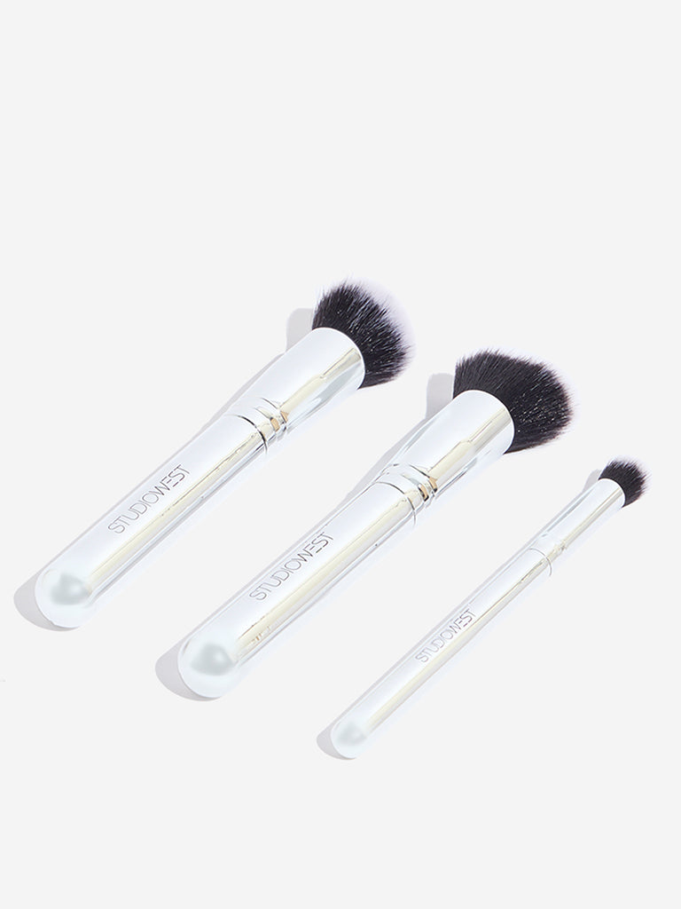 Achieve a seamless makeup look with this face brush set from Studiowest. This trio includes an expertly designed foundation brush for smooth application. a powder brush for a flawless finish. and a blush brush to add a natural flush. Crafted with ultra-soft bristles. these brushes blend effortlessly. ensuring even coverage with every stroke. The sleek. ergonomic handles offer a comfortable grip. making your beauty routine effortless. Whether you’re a makeup novice or a pro. this set is your go-to for creating a radiant. airbrushed look.