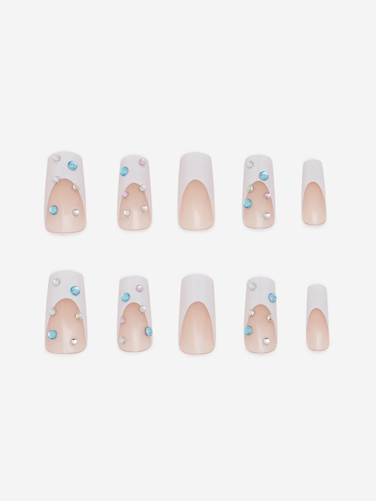 Add a touch of sparkle to your fingertips with this presson nail set from Studiowest. Featuring dazzling gemstones and a luxurious finish. this set is perfect for those who love a bit of glamour. The rich. glossy finish catches the light. while the strategically placed gems add a dash of elegance. Easy to apply and remove. these press-on nails give you a sophisticated. jewel-encrusted look in no time. perfect for a night out or a special occasion.