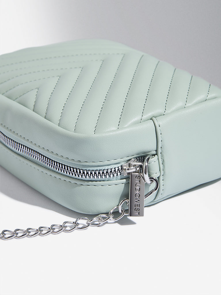 Uncover the ideal fusion of fashion and utility with the green pouch from Studiowest. Boasting a traditional green tone and an enduring quilted pattern. this pouch offers generous space for all your essential items. while the secure zippered closure ensures tidy organization.