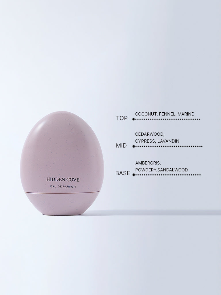 Hidden Cove Eau De Parfum from Studiowest is inspired by the serenity of a secluded shoreline.Opens with delicate floral notes that melt into creamy woods for a soft. enveloping warmth.A touch of musk creates a scent that feels soothing and intimate.Each layer unfolds gradually. echoing the rhythm of gentle tides and sunlit stillness.The blush-toned capsule mirrors its tranquil and timeless character.