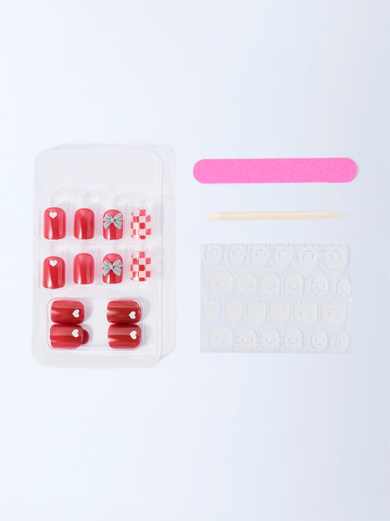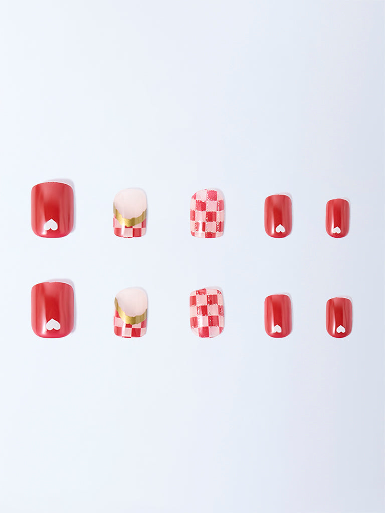 Pattern meets polish in this red checker nail set from Studiowest. The bold grid design reimagines retro charm through a modern lens. finished with a high-gloss shine that feels clean and confident. Each nail sits seamlessly against the cuticle. giving a tailored fit that lasts. Whether styled with denim or an evening look. it adds a playful structure that stands out with purpose. not noise.