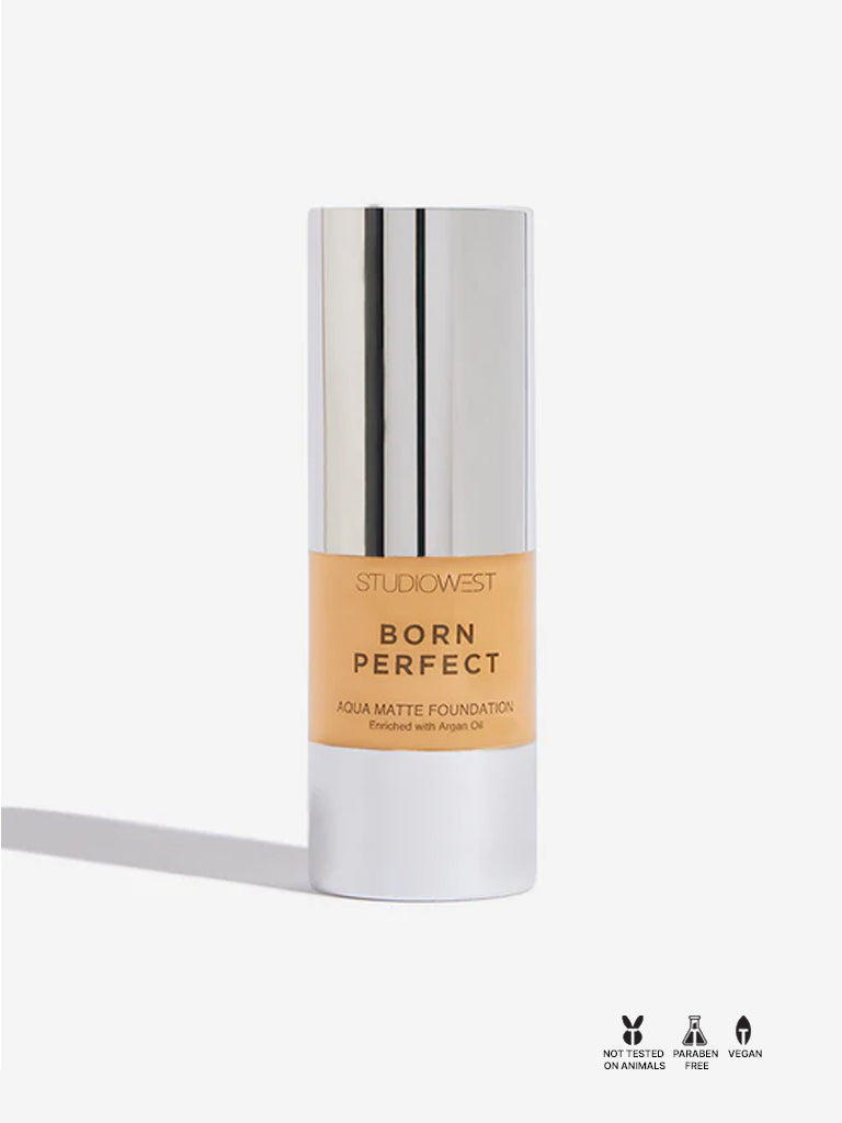 For a complexion that looks effortlessly radiant. turn to Studiowest’s Born Perfect Aqua Matte Foundation in Honey. Infused with Argan Oil. this formula delivers hydration while creating a soft-matte finish that enhances your natural glow. The silky. lightweight texture blends seamlessly. providing buildable coverage that conceals imperfections without settling into fine lines. Designed to last all day. it keeps shine under control while maintaining a smooth. breathable feel??perfect for those who want a skin-loving foundation with a flawless effect.