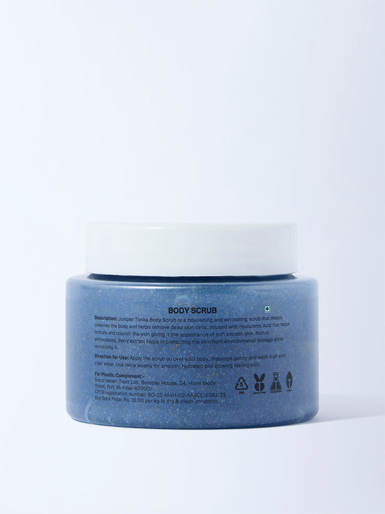 Polish and refresh your skin with the Studiowest Juniper Tonka Body Scrub. available in a 180 g pack. Enriched with hyaluronic acid and berry extract. this exfoliating scrub gently removes dead skin cells while deeply cleansing the body. Hyaluronic acid helps hydrate and smoothen the skin. while berry extract works to protect against environmental damage and boost skin vitality. leaving your skin soft. nourished. and revitalized.