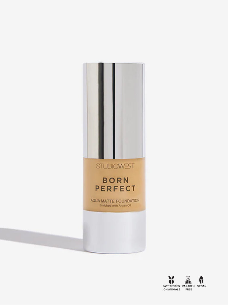 Silky-smooth and effortlessly blend able. Studiowest’s Born Perfect Aqua Matte Foundation in Latte is your key to a perfected. airbrushed look. Infused with Argan Oil. this lightweight formula nourishes while delivering a soft matte finish that never looks flat. It offers buildable coverage. seamlessly blurring blemishes and evening out skin tone. Designed to stay put without feeling heavy. this foundation controls shine while maintaining a comfortable. breathable feel??ideal for all-day wear.