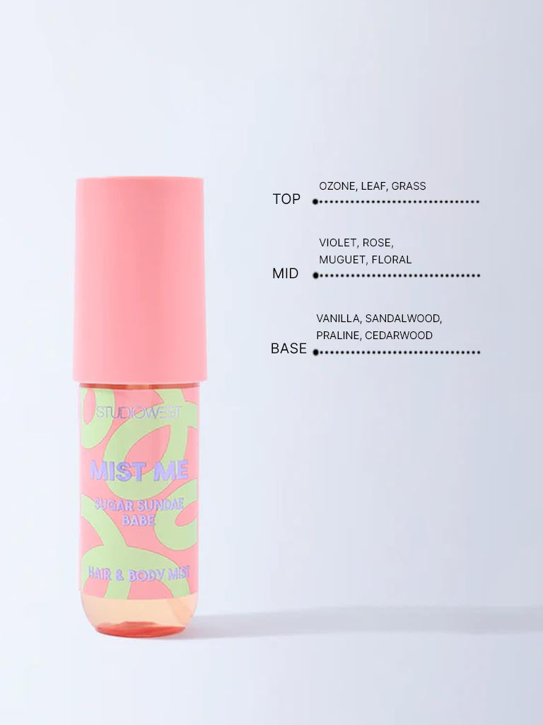 Sweet. light and playful. the sugar sundae babe hair and body mist from Studiowest adds a fun twist to your routine.Blends sugary notes with creamy warmth for a scent that feels soft and joyful.The fine mist refreshes instantly. leaving skin and hair delicately scented.Compact and easy to carry for quick pick-me-ups throughout the day.A cheerful everyday fragrance that brings brightness and charm wherever you go.